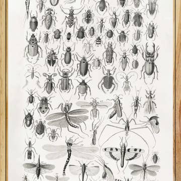 Art print featuring 31 species from the taxonomic order Coleoptera. Kelsey’s original gouache paintings assembled in a vintage-inspired format, now available in two sizes. Printed in Minneapolis on acid free 80# Mohawk Superfine cover. Packed with .024 inch chipboard backing in clear sleeve, ready for display.