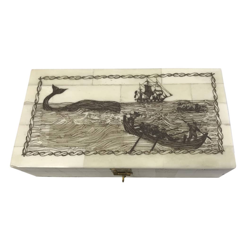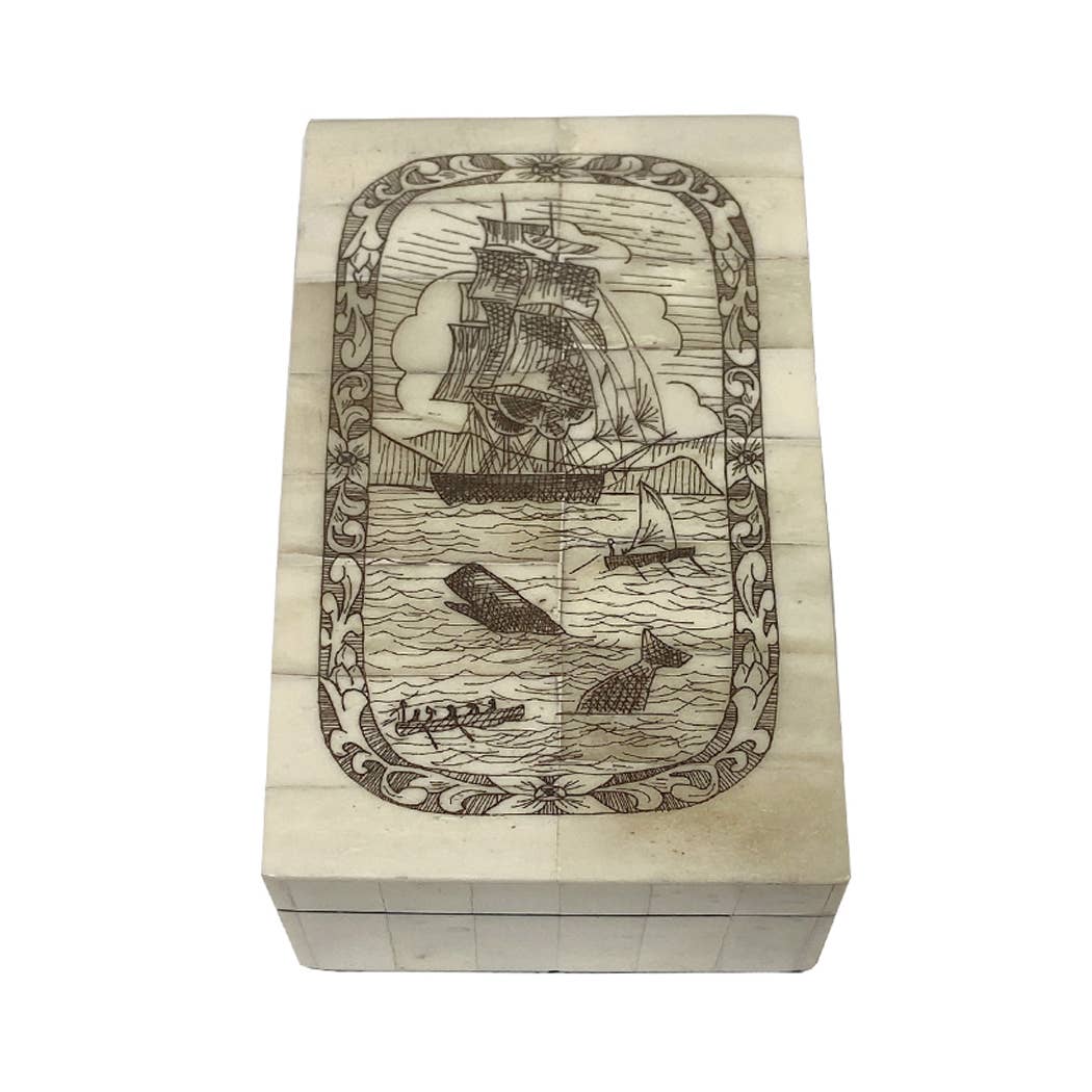 Wholesale Whaling Ship Etched Vintage Scrimshaw Bone Box, 5-1/4”