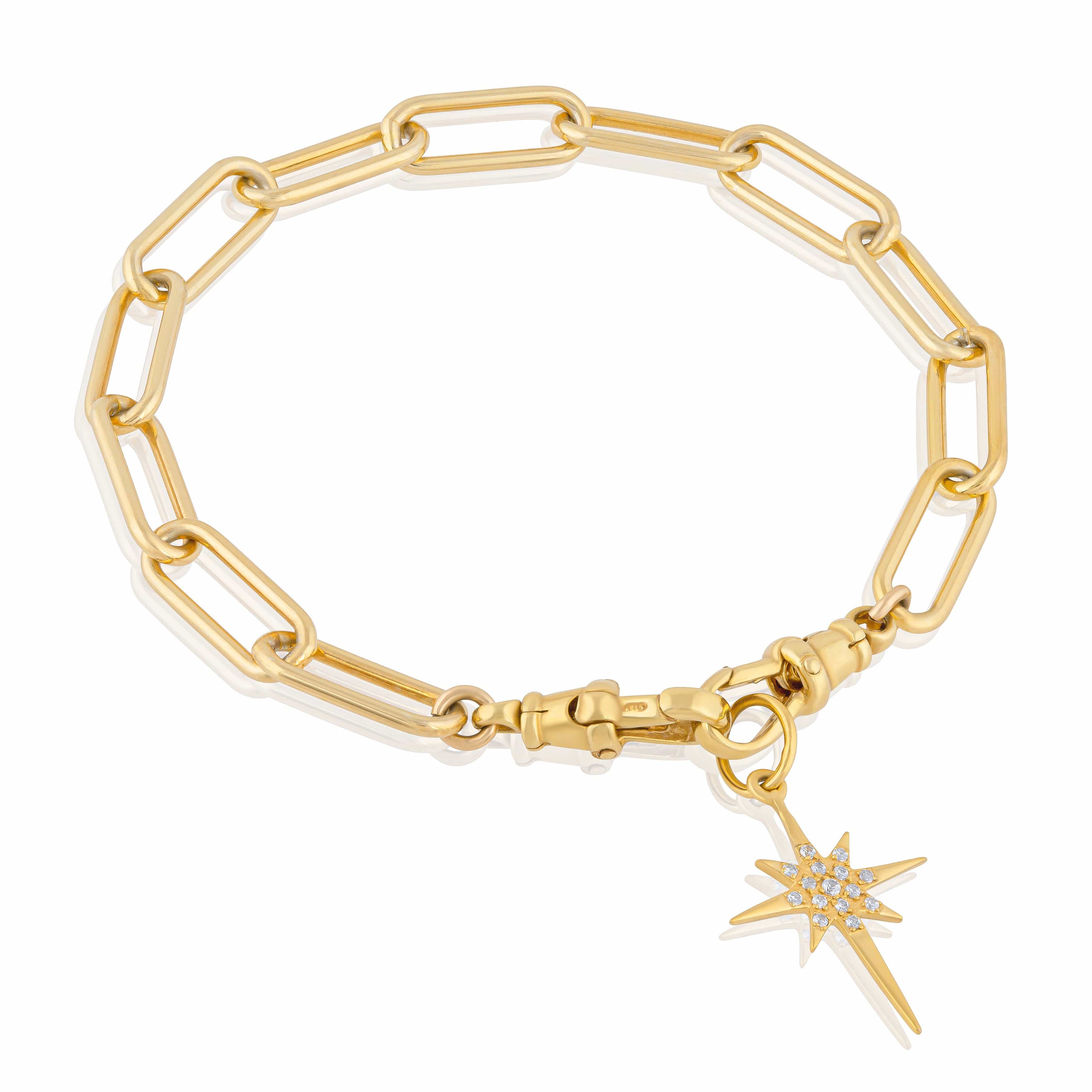 The perfect bauble to mix, match & stack. Wear this alone or with an entire arm party. Sterling silver plated in 14k yellow gold Lobster claw clasp. 7 inches with 1.25” extender.