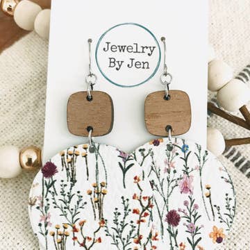 New style! Be the happy camper that we know you are! Each drop is made with a walnut wood diamond and all things camping double sided acrylic. Measures 2.25”. Made with hypoallergenic stainless steel hardware.