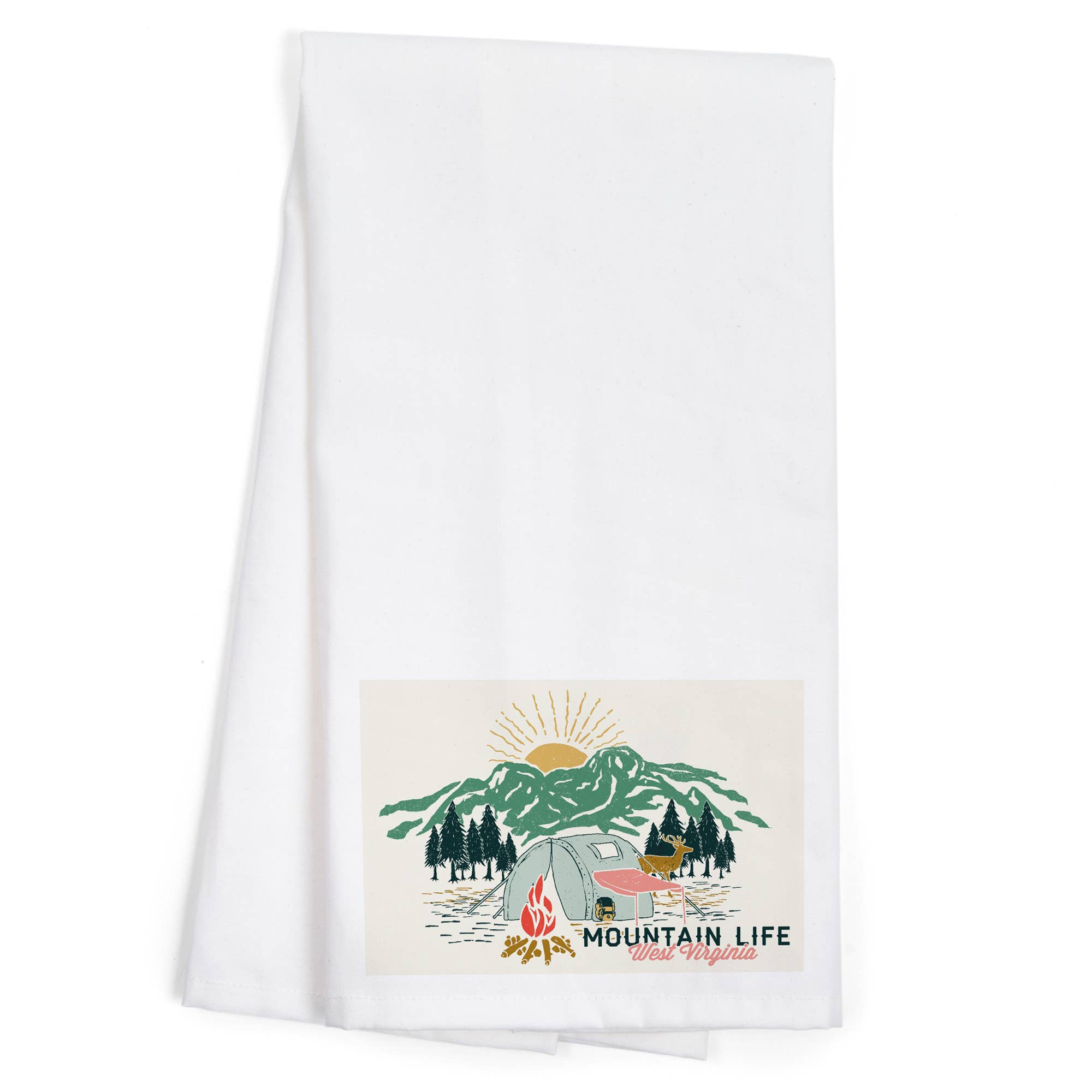 This is a quality 100% cotton recycled flour sack tea towel with a hand lettered print of a map of North Carolina Mountains. Machine washable. Unfolded, the towel measures approximately 30 in square. Due to the organic nature of these towels, there may be slight imperfections. Towel care: To maintain the highest quality print, wash towels in cold water and press with a cool iron. All towels are purchased from a US supplier and printed locally.