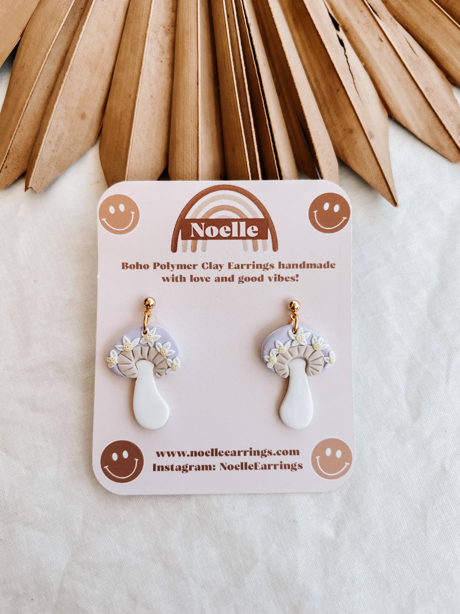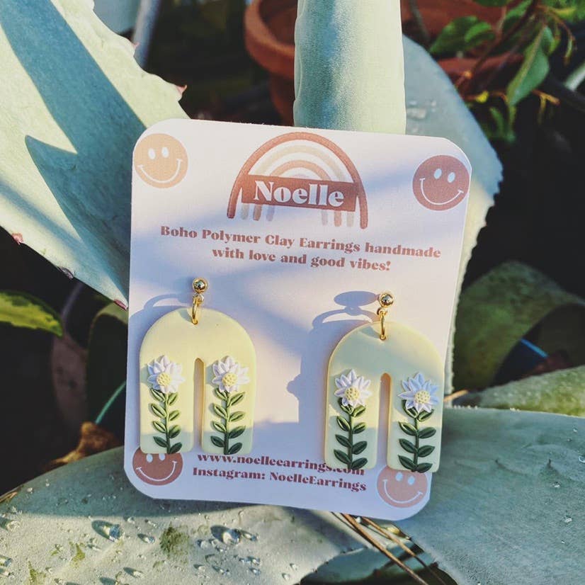 Handmade Polymer Clay Earrings made with love and good vibes. Hypoallergenic and Nickel free findings.- 18k gold plated posts *Since this is a handmade item, variations are bound to happen! We think this adds uniqueness to the product. *Noelle Earrings are handmade with polymer clay- this means they have to be handled with care. do not shower, sweat profusely, or swim in your earrings for more longevity with your earrings hardware. Do not sit anything heavy on the earring or allow it to bend to prevent breakage. Store them away from oils and perfumes in a cool, dry area.