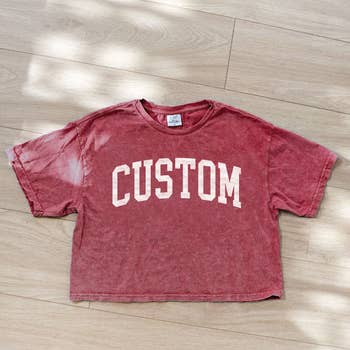 "Your CUSTOM Crop Top Shirt" Custom Boutique, Coffee Shop, Store, Business, Market Customized Cropped T-Shirt Now you can create your own shirt! Have Custom shirts made for your Boutique, Shop, Store, and small business! Possibilities are endless, get creative! Simply click the box that says "Customize this item for $1.00/unit" under the size options. Then in the notes section, state the exact text you would like printed. If you have a logo, please send us a high quality jpeg, or png file. Shirt Colors: Baby Blue, Red, Lilac, Soft Pink, Mauve, Sunset, Forest Green, White, Navy Blue, Black, Natural Shirt Sizes: S, M, L, XL, XXL Cotton Blend