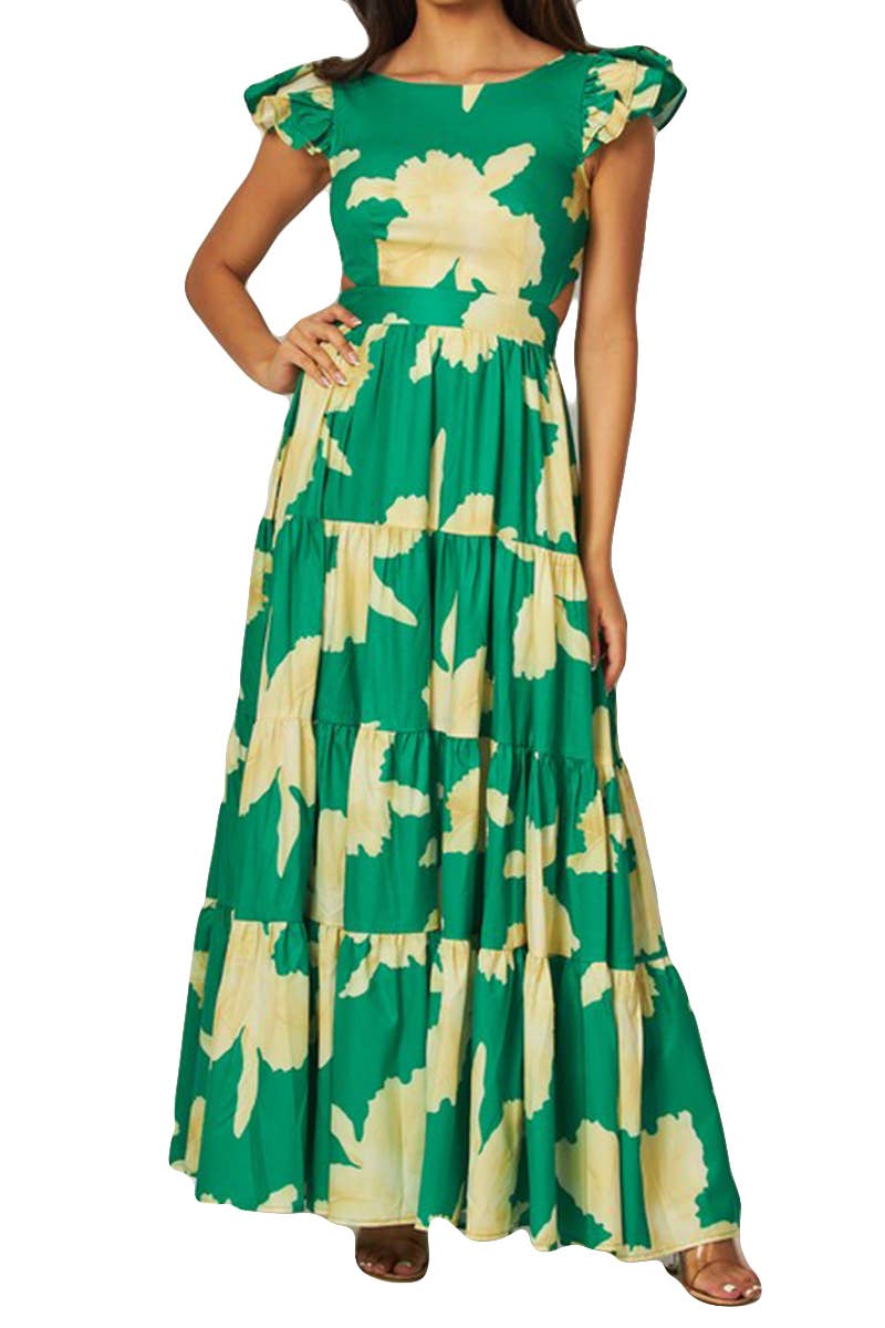 Wholesale Sunny Lemon Yellow Big Flower Maxi Dress - LWD3057