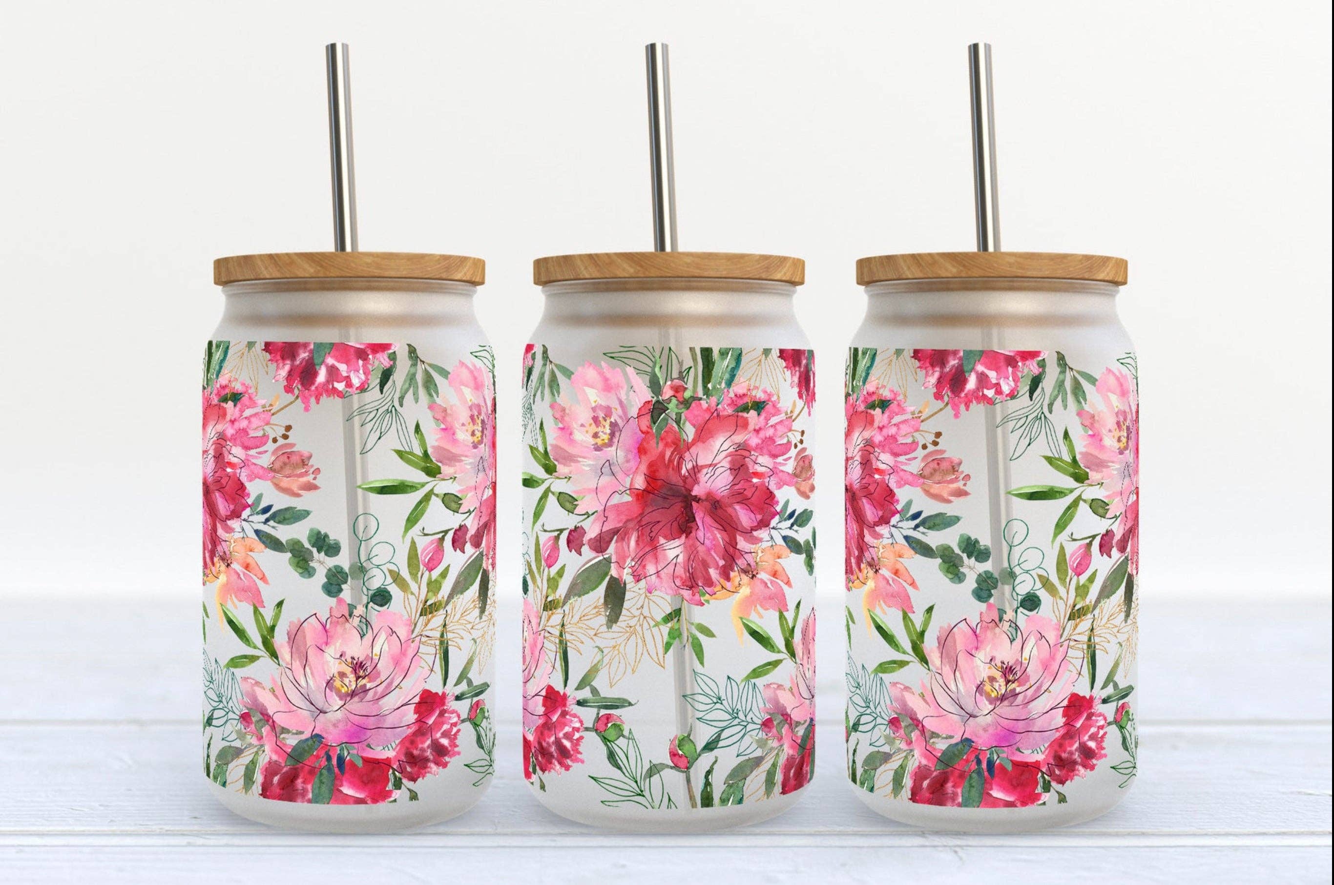Claro Mason Jars 16 oz Set of 2 - Available in Blue, Pink, Purple - Glass with metal lid and BPA free straws - dishwasher safe