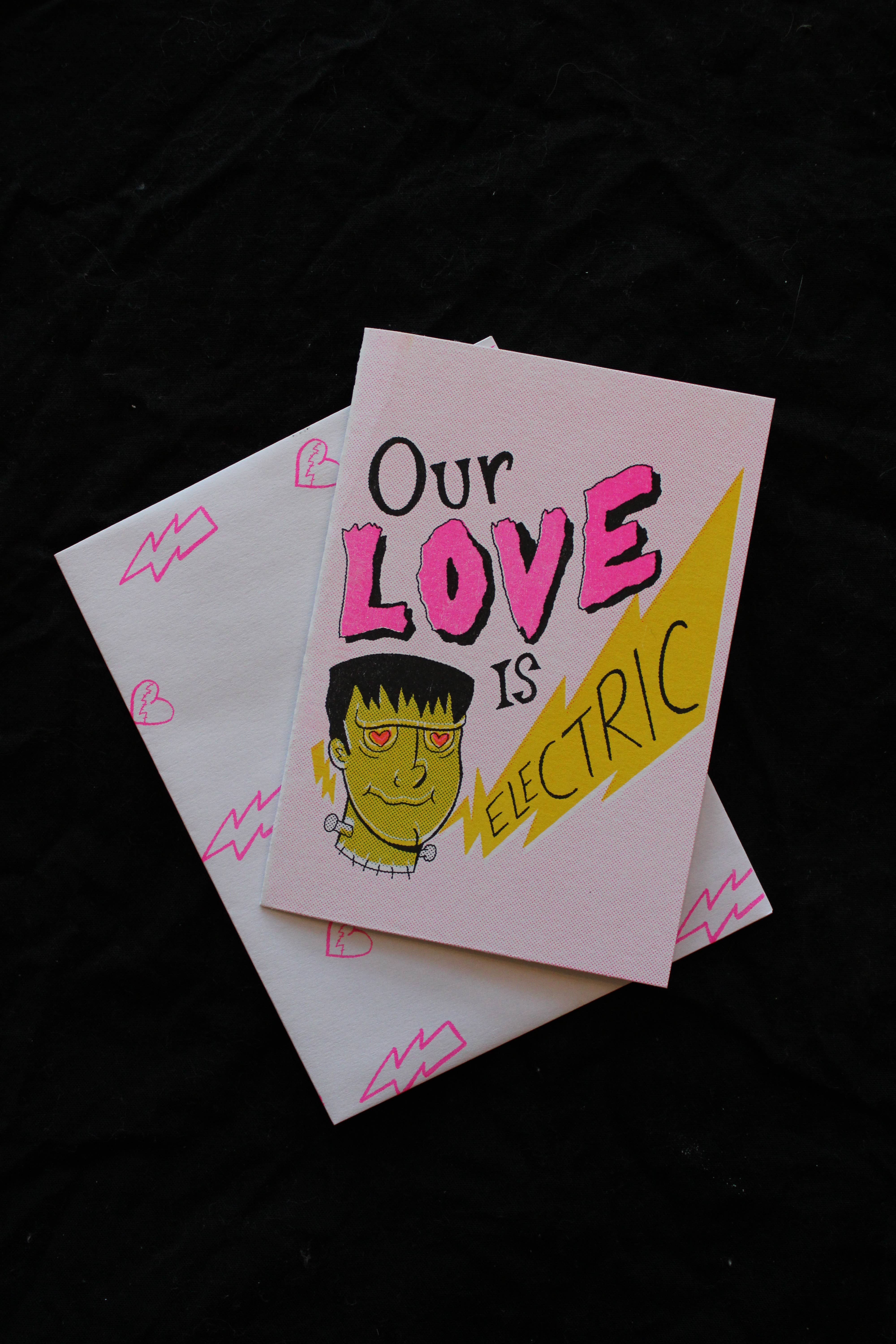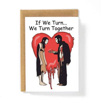 True love is eternal. Sometimes it's even made from spare parts. Don't bore your loved ones and co-workers with some store-bought mass-produced lameness. These cards are professionally printed on high quality luster greeting card stock and are sure to be the most unique card on the mantel. Each card measures 5x7 inches and are blank inside so that you can truly personalize your message. Every card comes with a matching envelope.