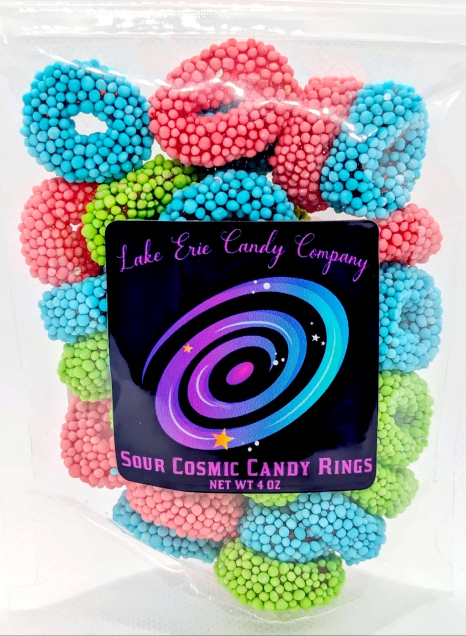 Get ready for a flavor explosion that's out of this world with Cosmic Candy-Coated Gummy Rings! These chewy gummy rings are coated in a crispy, crunchy candy shell, creating a mind-blowing texture combination that takes your taste buds on an intergalactic adventure. Featuring three stellar flavors: 🌴 Tropical Punch – A fruity, island-inspired burst 🍒 Cherry – A bold, juicy classic 🍇 Grape – A rich, sweet cosmic delight