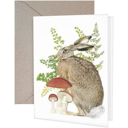 Step into a magical winter wonderland with this enchanting Whimsical Bunny Under the Glowing Mushroom card! Featuring an adorable bunny sitting beneath a glowing toadstool mushroom, with snow gently falling around, this whimsical scene captures the charm of the woodland world. The soft glow from the mushroom illuminates a twisted tree adorned with delicate blossoms, adding a touch of fantasy to this magical winter scene. -Blank Inside white card with a matte finish -5x7 when folded includes a white envelope -Individually packaged in a sealed cellophane sleeve -Hand made in USA