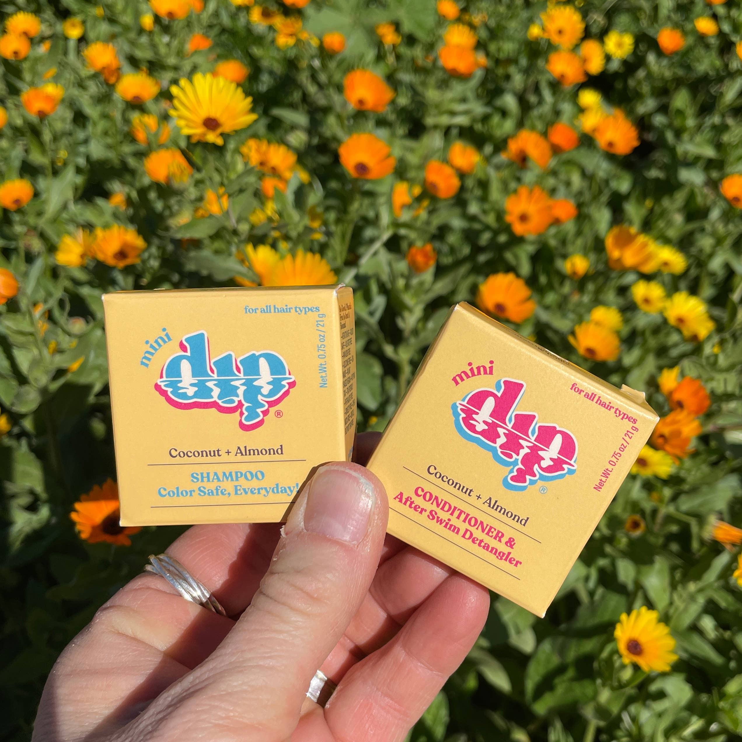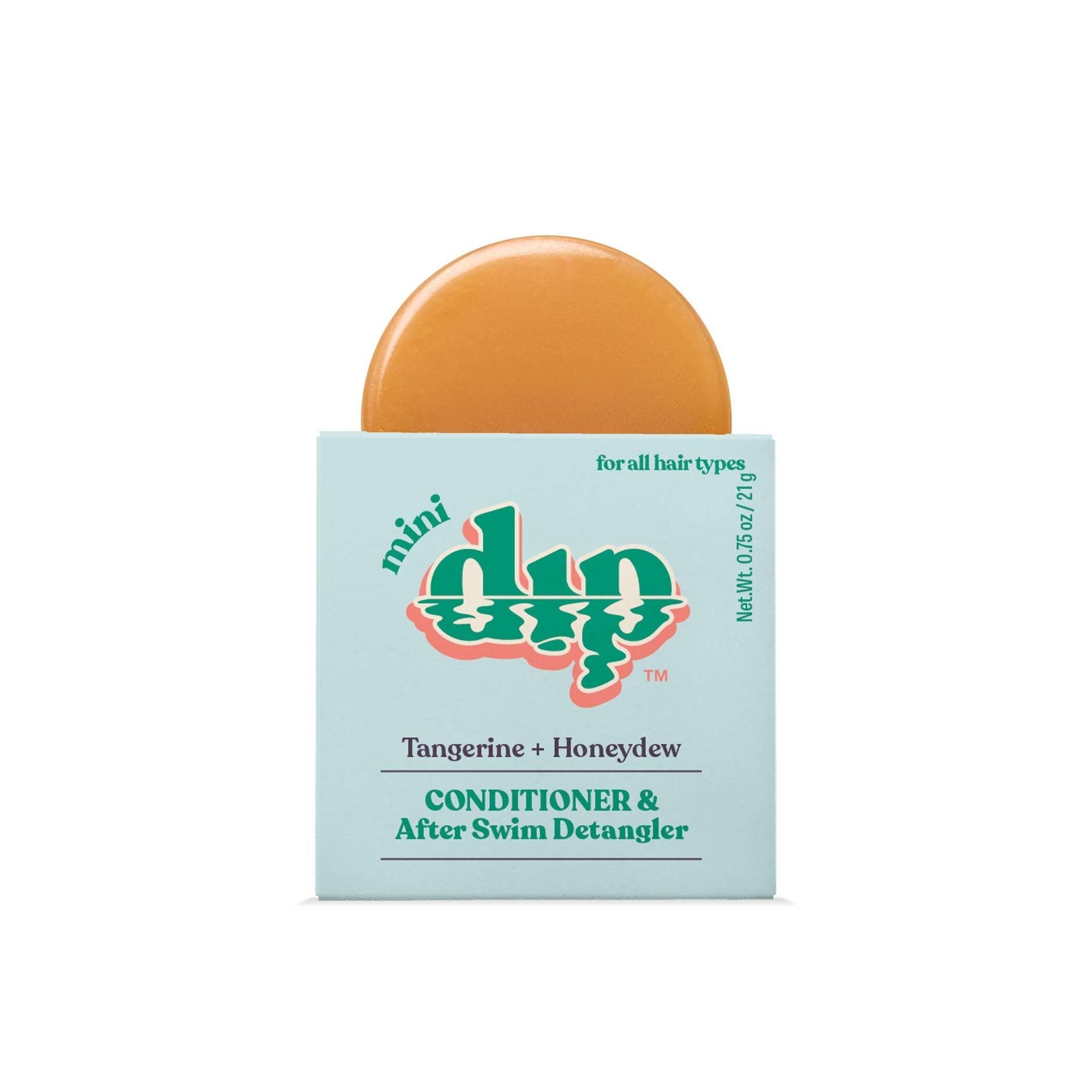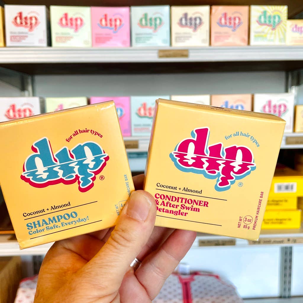 The Mini Dip conditioner bar was formulated for these 7 reasons: * we think a travel size is so important! (this bar can last months depending on use) * we wanted a conditioner bar that worked for all hair types * we wanted a conditioner bar that was formulated for people who take hair seriously * we wanted a conditioner bar that would detangle & help protect post swim or surf hair * we wanted a conditioner bar that let us air dry like a dream but also helped protect hair from heat styling * we wanted a conditioner bar that saved us money on our expensive salon product habit * we were sick of buying bars that overpromised & underdelivered Say no more to forcing a comb through your hair post swim, surf or shower. Our solid conditioner bars help moisturize and nourish from scalp to roots to end leaving your hair silky smooth and tangle free without weighing it down. Key Ingredients (click to see details on each) * Prickly Pear Seed Oil * Plum Seed Oil * Karanja Seed Oil * Amla Seed Oil * Sweet Almond Oil * Shea Butter * Baobab Seed Oil * Coconut Oil Swipe very wet bar down very wet hair and re-wet bar between swipes. Rinse first & then leave some in for some extra frizz fighting--and when in doubt: over apply! Works as a great follow up to our shampoo bar: (buy both & save here) We tested this bar on all hair types, textures and dramas. See our hair types page for extended instructions. * Available in 3 oz & 0.75 oz sizes (the larger bar is definitely a better experience if you have lots & lots of hair) * Smooths, shines, and softens every hair strand it touches * Is perfect for after shower and after swim * Prevents tangles when used before dipping into water and detangles when used after water