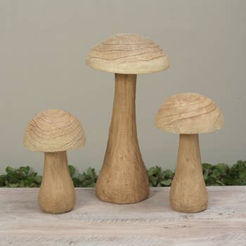 These beautiful, nature inspired, hand carved mushrooms are made of sustainably harvested Suar wood in a traditional family workshop in Bali. Designed by Balizen, they have a simple wax finish to enhance the unique grain of each wood piece. The perfect vintage mushroom decor accent piece. Dimensions: 6D x 7" (15D x 18cm)