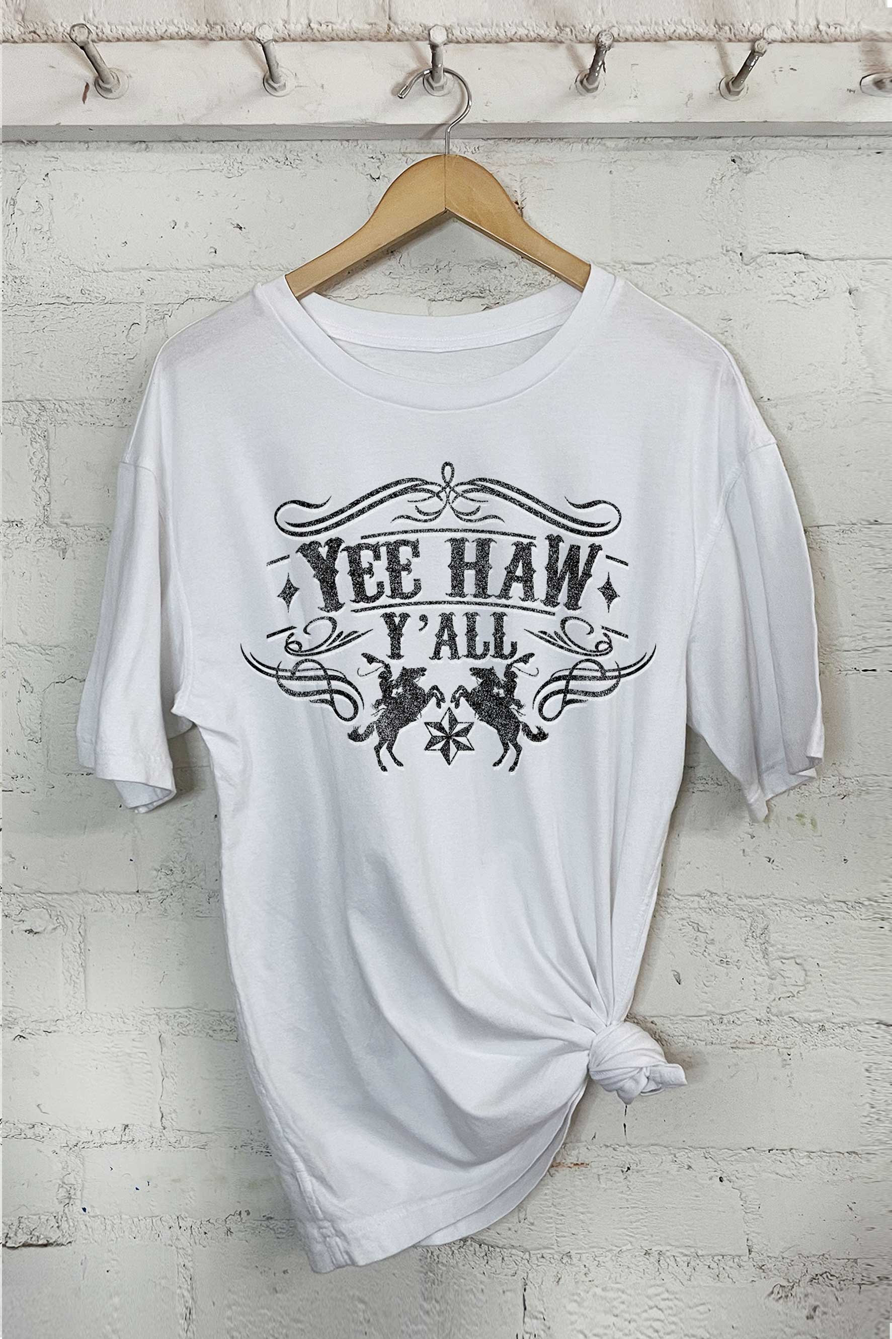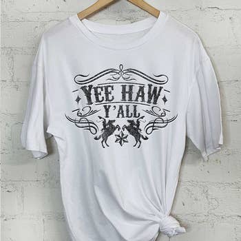 Your customers will love our tees made on soft Bella Canvas. "Y'all" featuring cowboy boots is printed on a natural colored tee.