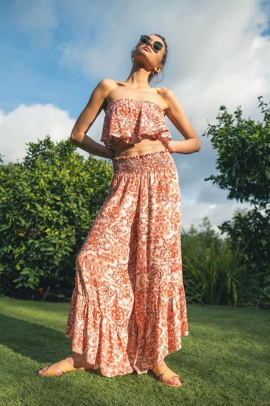 Introducing K Too's latest creation - the Satin one shoulder flowy set with wide leg pants. This top and pant set is designed for the modern woman who values style and comfort. The one-shoulder design adds a touch of elegance, while the flowy satin material provides a luxurious feel. The wide-leg pants offer a relaxed fit, perfect for any occasion. Made in the heart of Los Angeles, this set embodies K Too's commitment to high-quality, trendy garments that empower women to express their individuality with confidence.