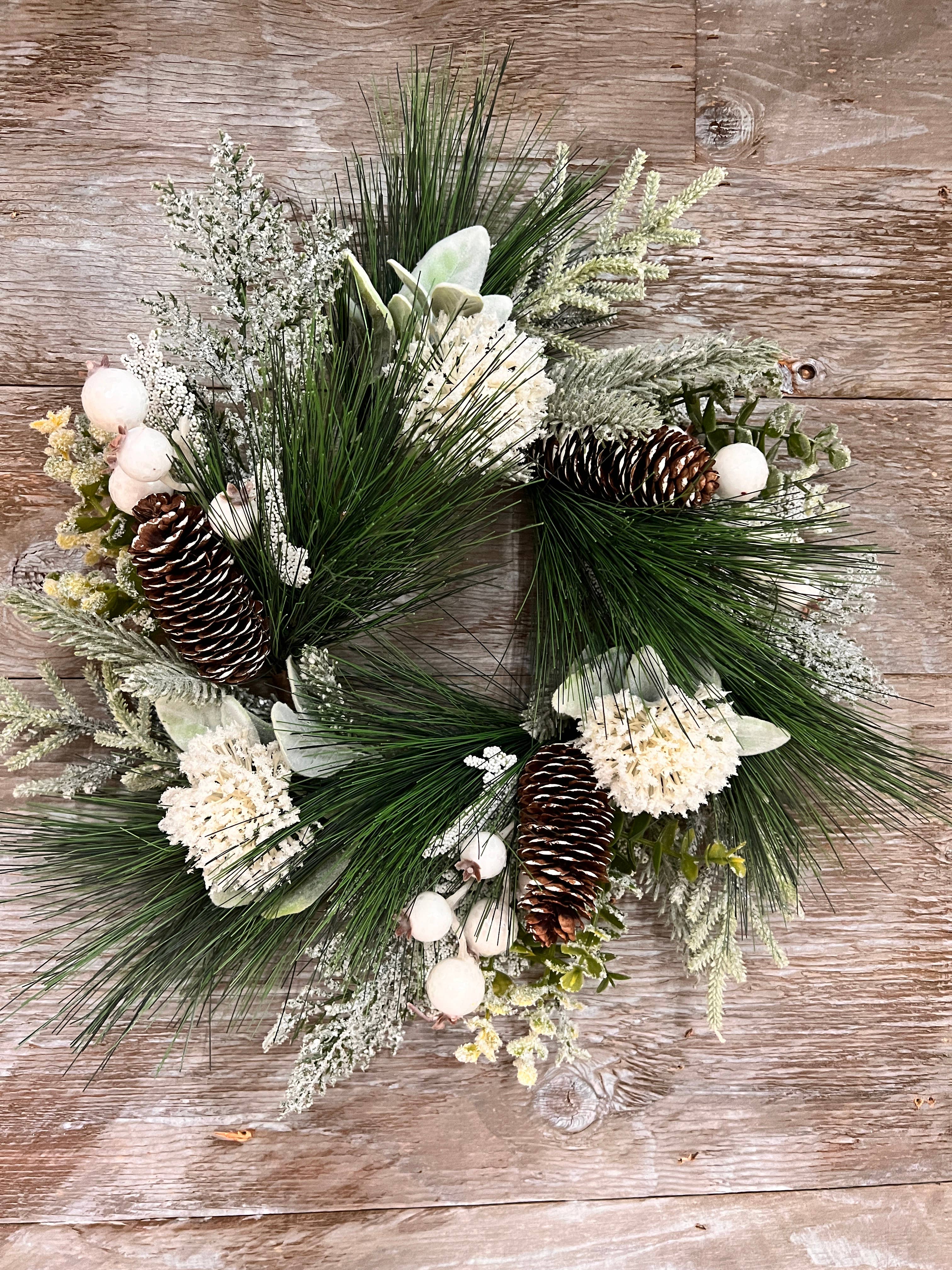 This Artificial White Berry and Bells Pick is a festive addition to holiday décor. With snow-dusted white berries, faux pine, holly leaves, and silver sleigh bells on a hand-wrapped wired stem, it adds a seasonal winter look to arrangements and wreaths Size: 12 inches long (end of stem to top of branch) Use it in Christmas floral displays, tuck it into a tree, or incorporate it into other holiday decorations.