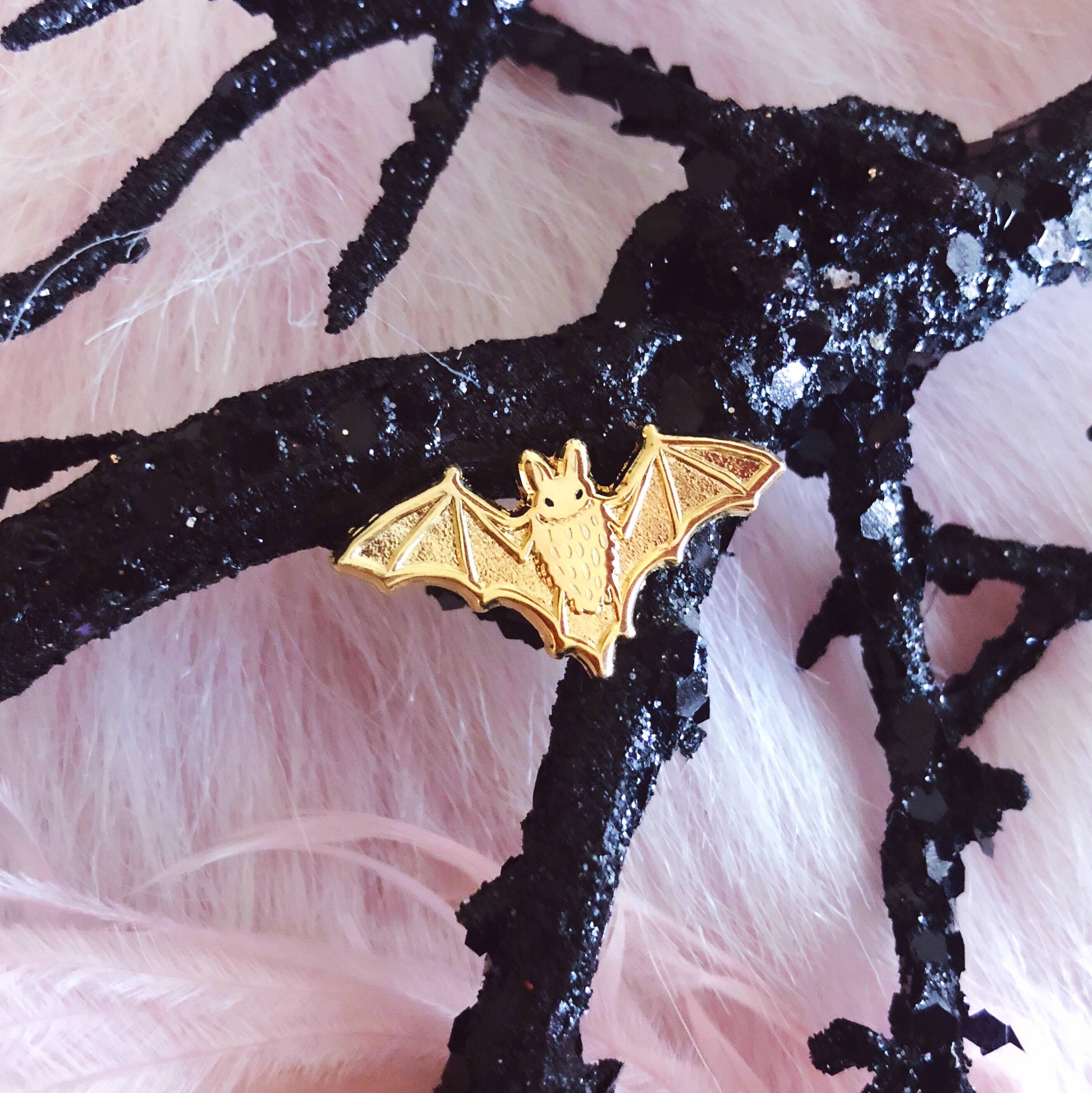 A little dainty, a little dangerous. This rose gold scorpion pin is 3d molded and scary shiny. 1 in. 3d pin Rose gold finish Single-posted Black rubber clutch backing Features Lilly Baik logo backstamp.