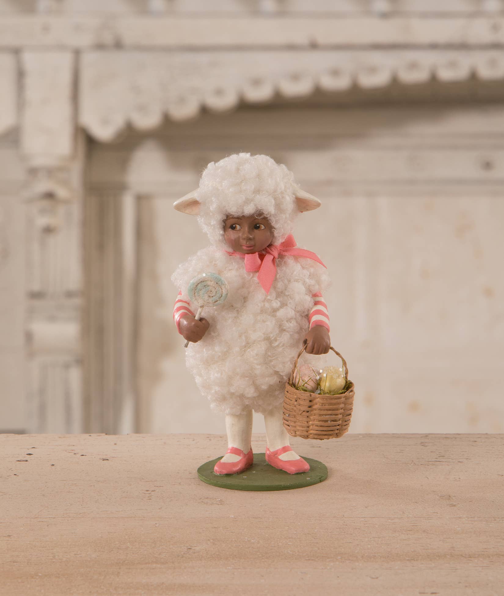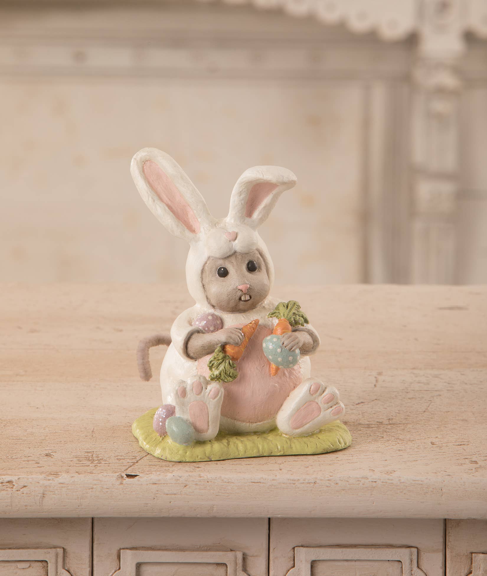 In an exciting collaboration with peeps®, bethany lowe designs has crafted a large, paper mache version of the iconic marshmallow treat. With specially prepared paint and a coat of sugar glitter, this adorable bunny looks like the real deal. Just make sure your guests don't try to take a bite! Paper mache and glitter.