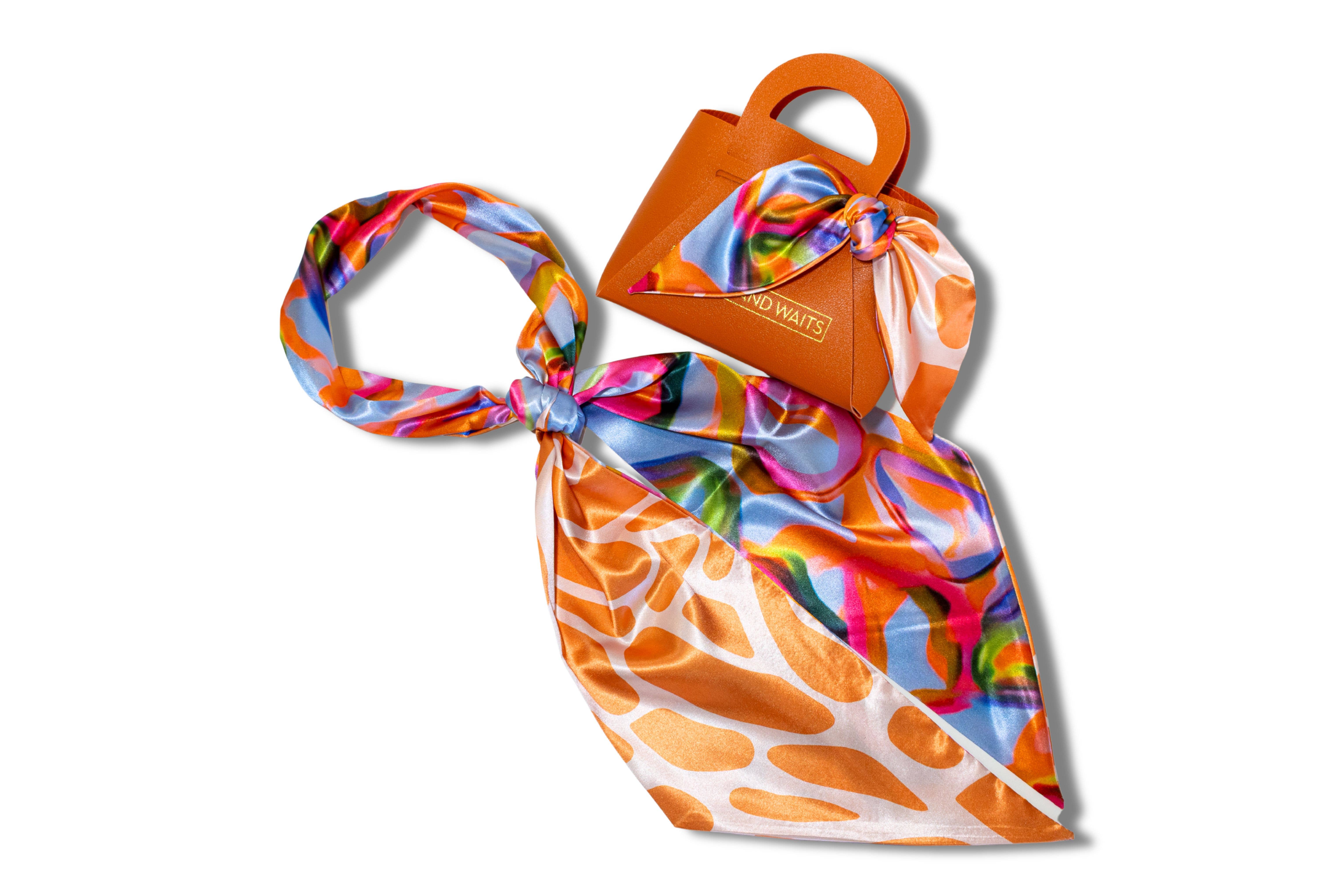 Bold print accessory scarf inspired by the classic Hermes Twilly. Wear as a scarf or hair tie. Also accessorize handbags, belts, hats and more. Packaged in a giftable mini WW branded bag. Includes card with QR code to styling videos. Modal satin - 54" x 4.5" * Display scarf available for purchase - scarf only - does not come with giftable bag