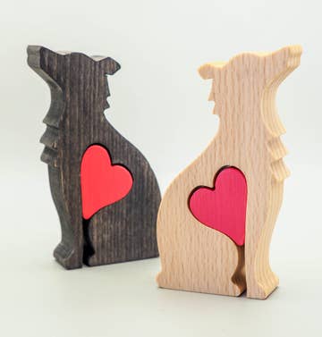 Border Collie Wooden Dog Decorative Figurine Charming dog figurine with puzzle love heart - a unique and timeless keepsake for pet lovers Key Features: + Premium UK Beech Wood + Handmade in Stirling, UK + Available in a variety of stain colours. (Not sure what to choose? Go for natural wood!) + Unique puzzle love heart feature + Patented design + First year wholesale + Custom breeds available + Eco-Friendly: Made from organic materials and delivered in plastic-free packaging. + Fast production time. Details: Height: Up to 4 inches Weight: Up to 60g Occasions: + Pet's birthday / Gotcha Day + Per memorial + Christmas / Stocking Filler + Valentine's Day + Mother's / Father's Day + Birthday and Anniversary + Thank you gift for pet sitter + Housewarming / Bon Voyage This handcrafted dog figurine is not just a gift; it's a personal and heartfelt way to celebrate, remember, and cherish the special furry friends in our lives.