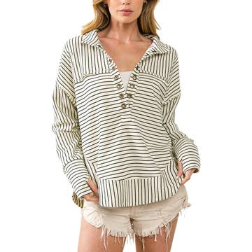 60% cotton 40% polyester. Super soft baja stripe poncho style hoodie. Kangaroo pocket. Loop terry. Standard fit. Prepacked s-xl.