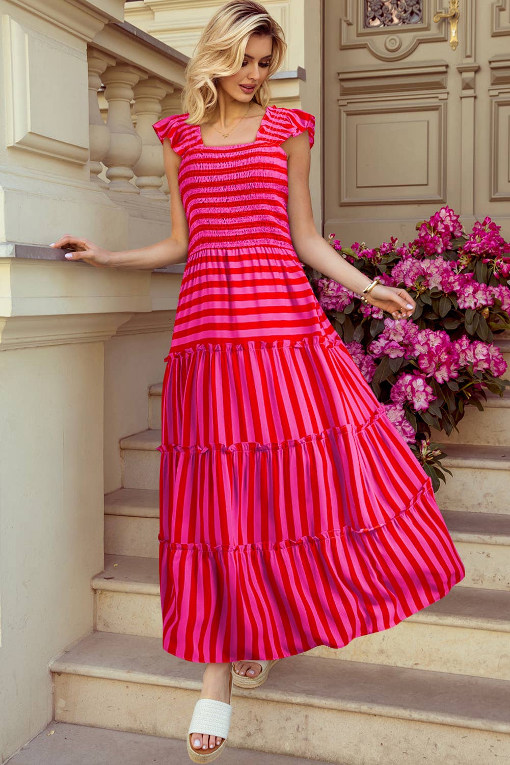 SKU: RCJW02476-RoseRed-S Made in China Aesthetic: Casual and Streetwear Care Instructions: Hand wash Fit: Contemporary Neckline: Halter Occasion: Day Party and Everyday Pattern: Striped Season: Spring/Summer Skirt & Dress Length: Maxi Sleeve Length: Sleeveless Product Language: English Weight: 300 g (10.58 oz) Product Materials: Plastic-free Production: Fair trade