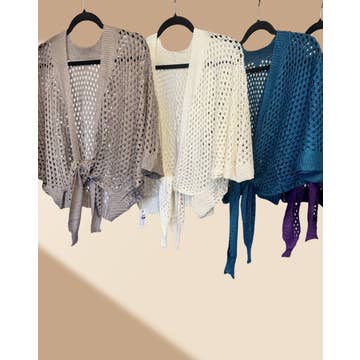 Wholesale JC063344 Eyelet Open-Knit Metallic Cardigan with Front Tie