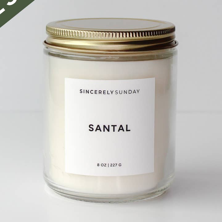 Inspired by: Le Labo’s Santal 33 Smells: woody and musky Notes: sandalwood, cardamom, and musk A smoky blend of sandalwood, spicy cardamom, and warm musk envelops you in an alluring embrace. This scent evokes the quiet confidence of a worn-in leather jacket, the flicker of a campfire, and the undeniable pull of nostalgia—bold, distinctive, and unforgettable. -- Product Details • Makes one 8 oz candle • Burns 50+ hrs Includes • 8 oz of scented wax • 1 wick, 1 wick holder • 1 compostable pouch • 1 Candle Label How to Make 1. Choose a heat-safe vessel that’s ~3” wide. 2. Center the wick and secure it with a wick holder. 3. Place wax bars into the pouch and microwave for 2 minutes, or until fully melted. 4. Pour + Enjoy: Pour wax into the vessel. Let cool for 3 hours. Trim wick to ¼” before lighting.