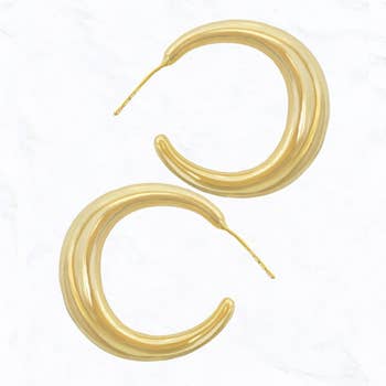 This pair of hoop earrings displays a fashionable layered metallic style. Celebrate the art of accessorizing with this piece that effortlessly encapsulates modern trends. 100% ZINC
