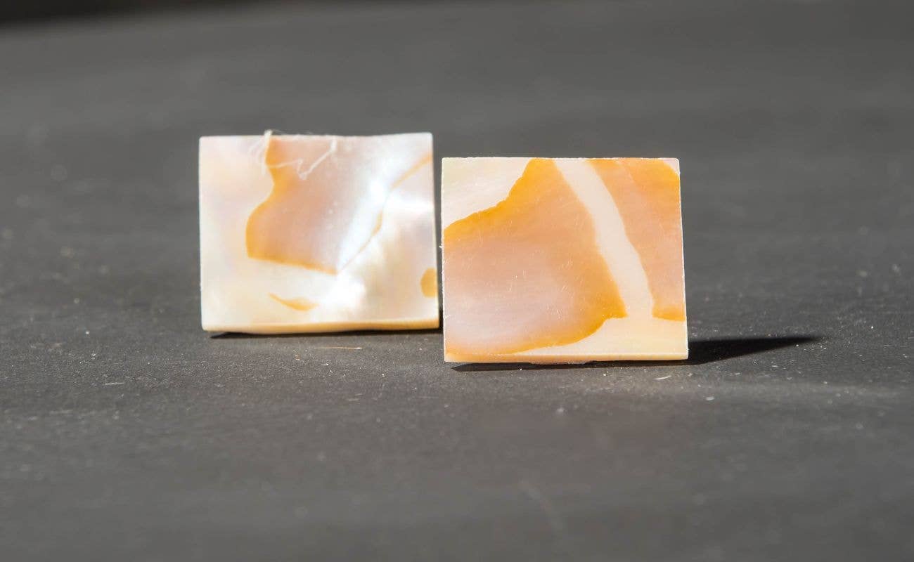 Meet MC's distant cousin, KAMPANA. Also inspired by the bell-shaped sleeve of the traditional Filipiniana gown, KAMPANA is the perfect everyday stud. Simple and lightweight, they act more as a personal piece vs. statement. BARONG: pearlescent cream + gold hardware.Materials: Polymer clay, non-tarnish gold jump rings, hypoallergenic stainless steel posts. Nickel & lead free. .8in lg. | 3g wt.
