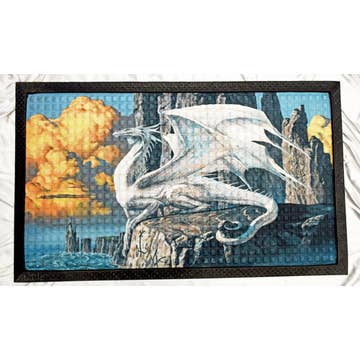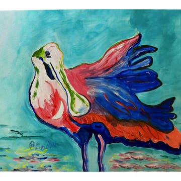 Doormat featuring breed specific Pelican artwork. Welcome your guests in style with our Artwork Door Mat, designed to withstand almost any weather condition. This mat, measuring approximately 18 by 27 inches, is held together by durable black binding tape. Its top layer, composed of polyester felt, is dyed with the eye-catching image you see on the mat. A few layers below provide the mat with stability, while its rubber bottom is stamped to help prevent slipping and ensures safety. Our mat works wonderfully as both an indoor or outdoor door mat. For cleaning, simply hose it off with water or use a power washer - no need for any cleaner that produces suds. Avoid scrubbing with a brush, instead, opt for the vacuum on floor setting. Designed manufactured and printed in the USA, this mat is a perfect addition to your porch, outdoor kitchen, entryway, or any indoor space. Its unique design makes it a charming decorative rug that greets your guests and adds a stylish touch to your home deco