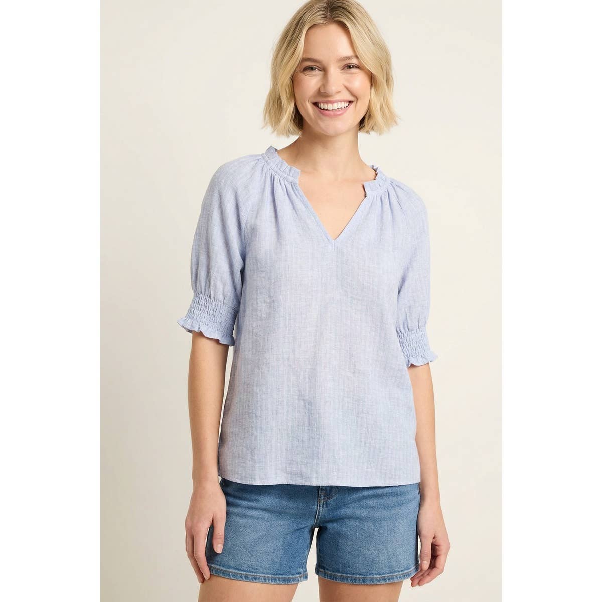 L6872 | Woven Rayon Nylon Elastic Short Sleeve Top