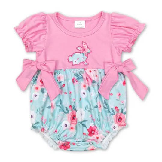 Short sleeves Mama's bestie smocked bow baby girls romper