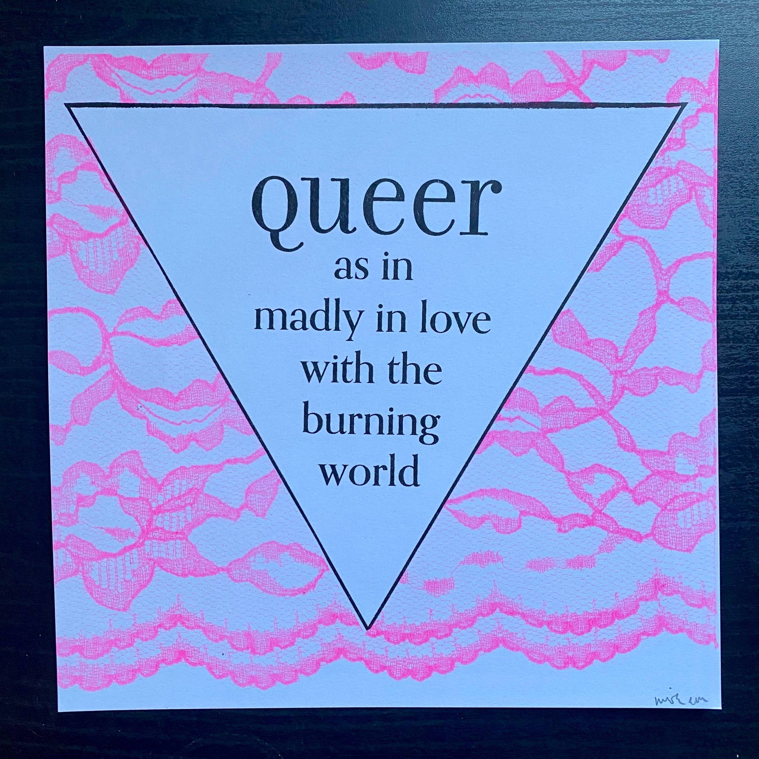 The designs that started in all, available as a print for the first time ever (I think). Printed by Brownlee Press Design by Rio Wolf 11" x 17" - ships with backing board and sleeve Image Description: An 11" x 17" manilla yellow print or a white design on a black background. There are three different design options. One option is the statement “Protect Trans Kids” with a rose and knife between the letters, all in a gothic font. Another option is the statement “Protect Trans Folks” with a rose and chain between the letters, all in a gothic font. The third option is the statement “Protect Trans Folks” with a rose and a flail between the letters, all in a gothic font.