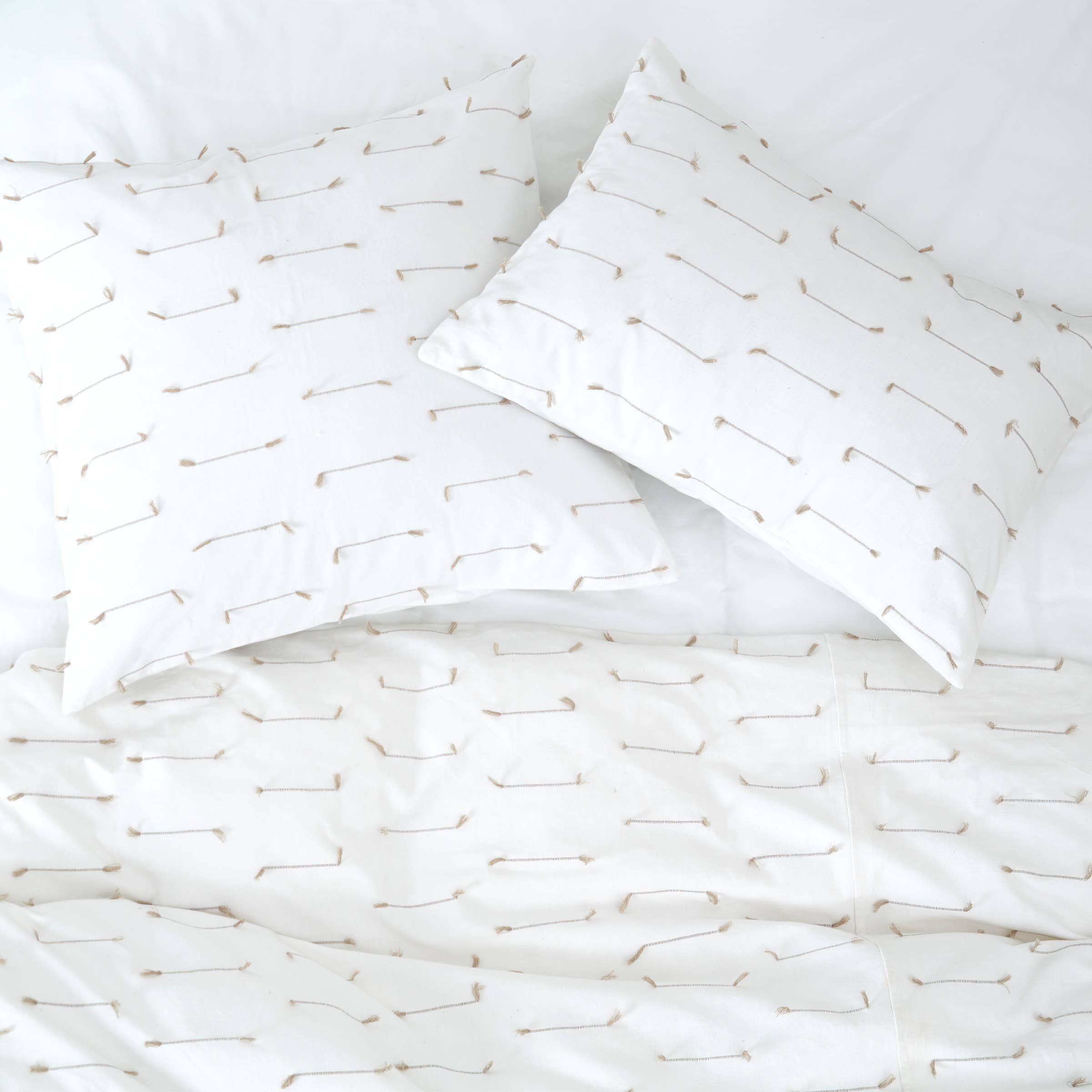 Asymmetrical, but perfectly balanced. Contrast quilting hand-stitched with a heritage Kantha technique ties the cool Indigo, White, and Boulder color combo of Lynnhaven together for the perfect modern yet casual look.