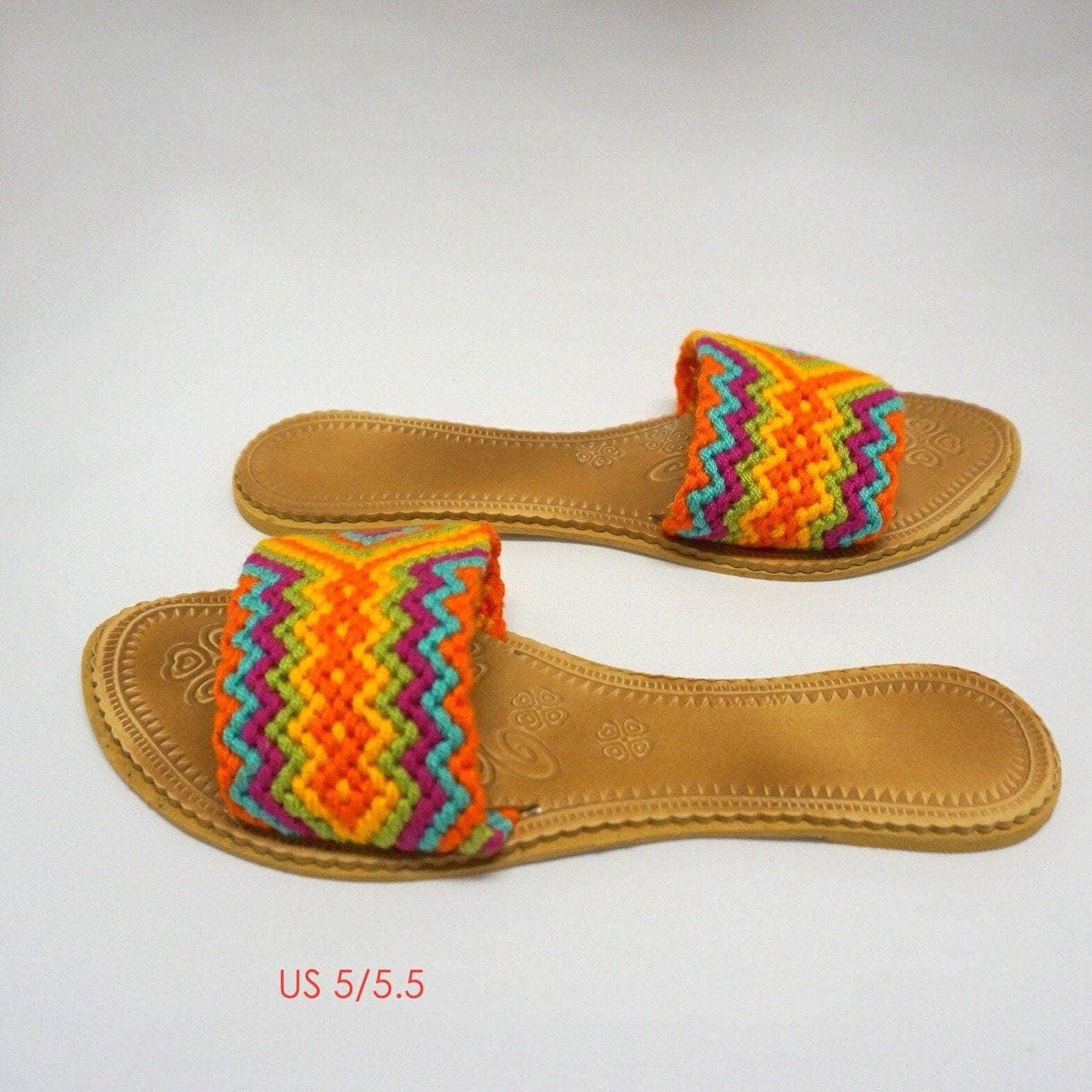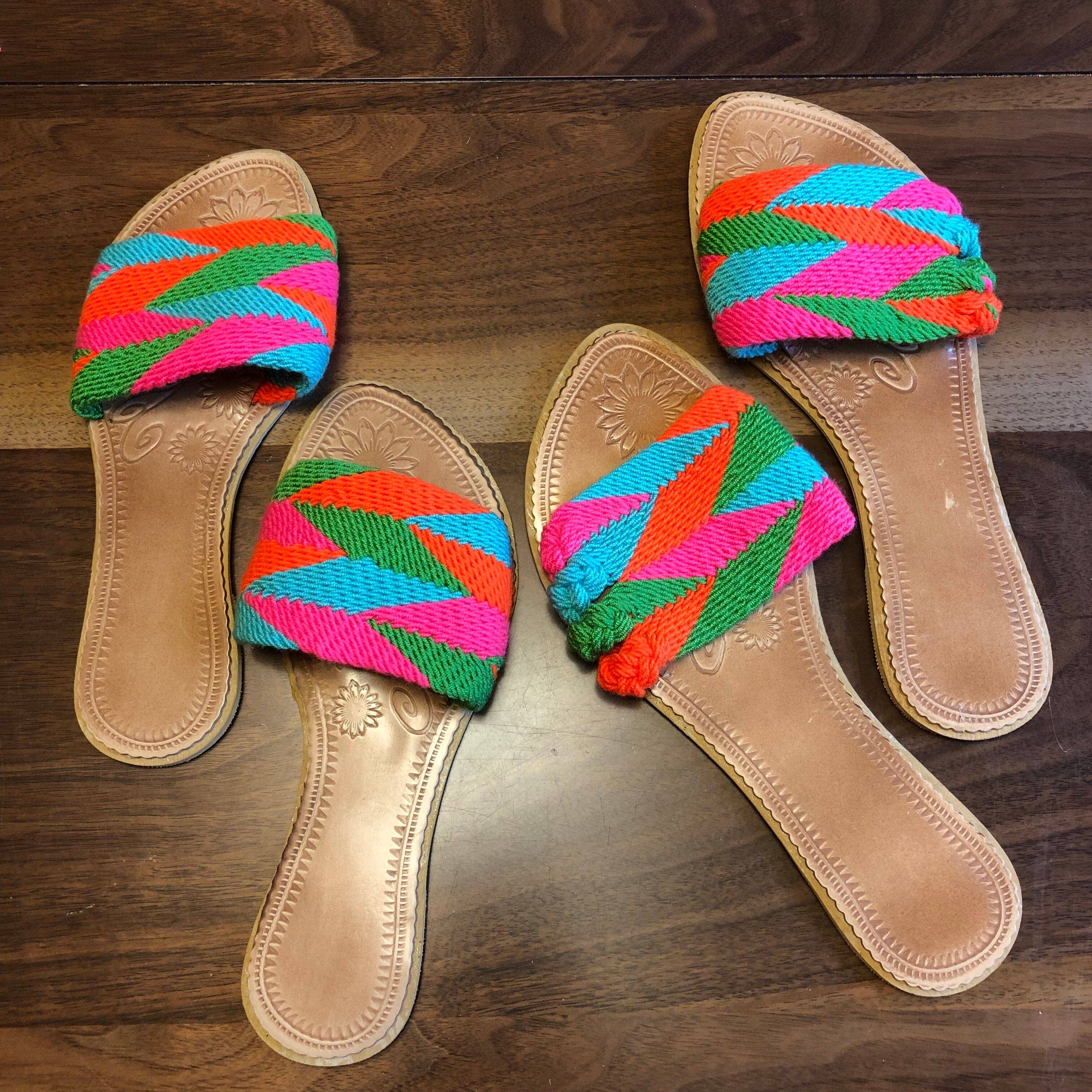 Give your feet a unique & special look with our Colorful Pom-pom Sandals! Perfect Flip-Flops for a warm day, as a beach/poolside accessory or as a compliment to your Yoga/Pilates outfit. Handmade using multicolor handwoven straps and decorated with colorful pom poms, these Cute Sandals in boho chic style are the must-have accessory for your summer wardrobe. Your girls will love them too! Details: * US WOMEN SIZE. Limited quantities per size. Some styles may not be available in all sizes. Choose the color number and then check size availability (if "Add to cart" option is ON, it is available for that size) * We suggest ordering your usual shoe size, but if you normally are US X.