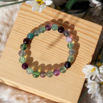 Rainbow Fluorite Stretchy Beaded Bracelet - Wrist Mala Prayer Beads - 10mm for Large Wrists. Qualities or Properties of Rainbow Fluorite: Cleanses & stabilizes one's aura. Absorbs & neutralizes negative energy & stress. Increases one's power of concentration. Boosts self-confidence. Aids in making decisions. Encourages a positive outlook. Increases physical & mental coordination. Boosts the immune system. Great for the skin & regenerating DNA. Comes in a Case Pack of 2. Bead Size: 10mm with 12mm Guru Bead. Bracelet Length: About 7.5 inches in the inside circumference. Fits large wrists.