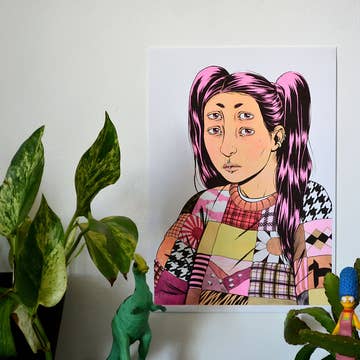 A4 (210 × 297 mm) Risograph print, 3 colours Munken Lynx 240gsm (Please note that colours may differ slightly to the photos due to the variations in Risograph printing.) Risograph printing is the most eco-friendly printing process around. It uses resin-free soya and rice-bran oil inks, which are much more bio-degradable than the usual petroleum-based inks. The printer is highly efficient using almost no thermal energy, making it much more energy efficient than laserjet and inkjet printing. Prints are sent without backing or cello wraps.