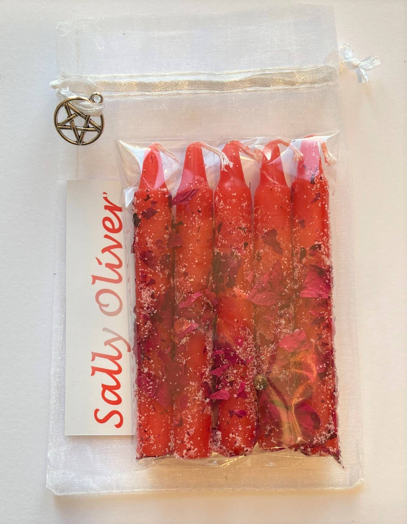 These are a set of 5 beautiful spell candles, rolled in herbs. A perfect spell for removing curses and hexes. Candle magic has been in existence for centuries. It is extremely popular due to it being one of the simplest forms of spell casting. You don’t need to be a witch to perform candle magic. You do need a witch to create the spell. I have selected the best ingredients for coating the candle and blessed these. Each set of 5 herb rolled candles come in a beautiful organza bag, complete with pentagram charm. I also provide a special incantation to be spoken, to complete the magic. Made in the United Kingdom.