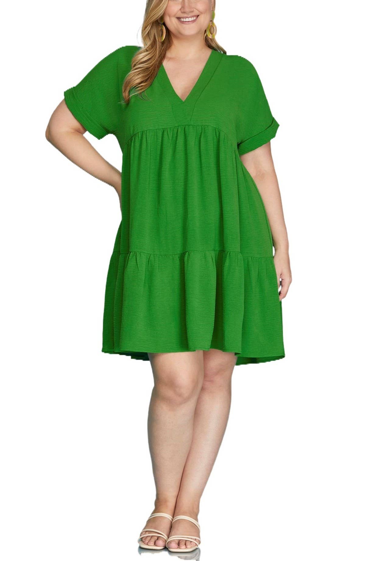 Plus Size Contemporary Maxi Dress Solid Color Waist Tie Short Sleeve Button Down Stretchable Quality Fabric Model is size 43-32-54, wearing size XL