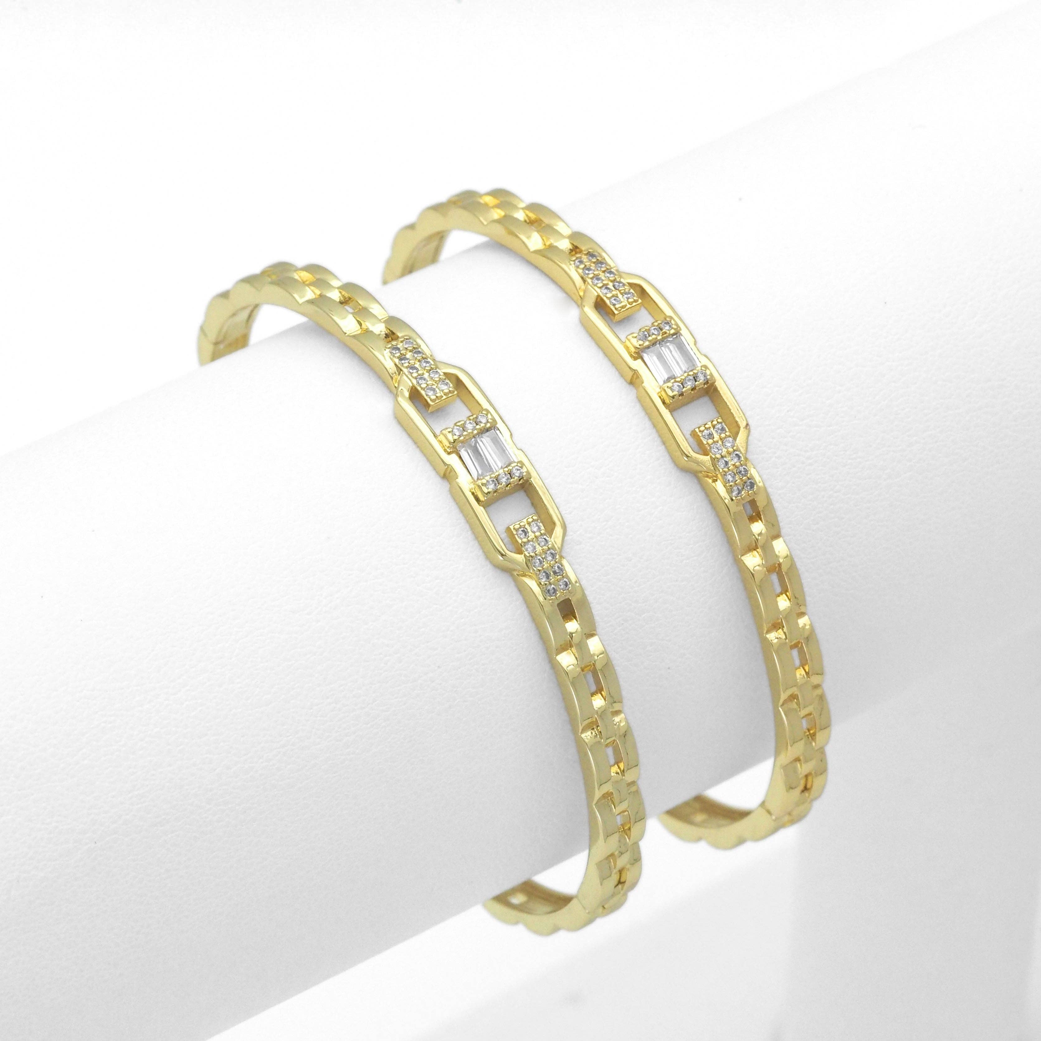 24K Gold Filled Bracelet with Clear Baguette Cubic Zirconia