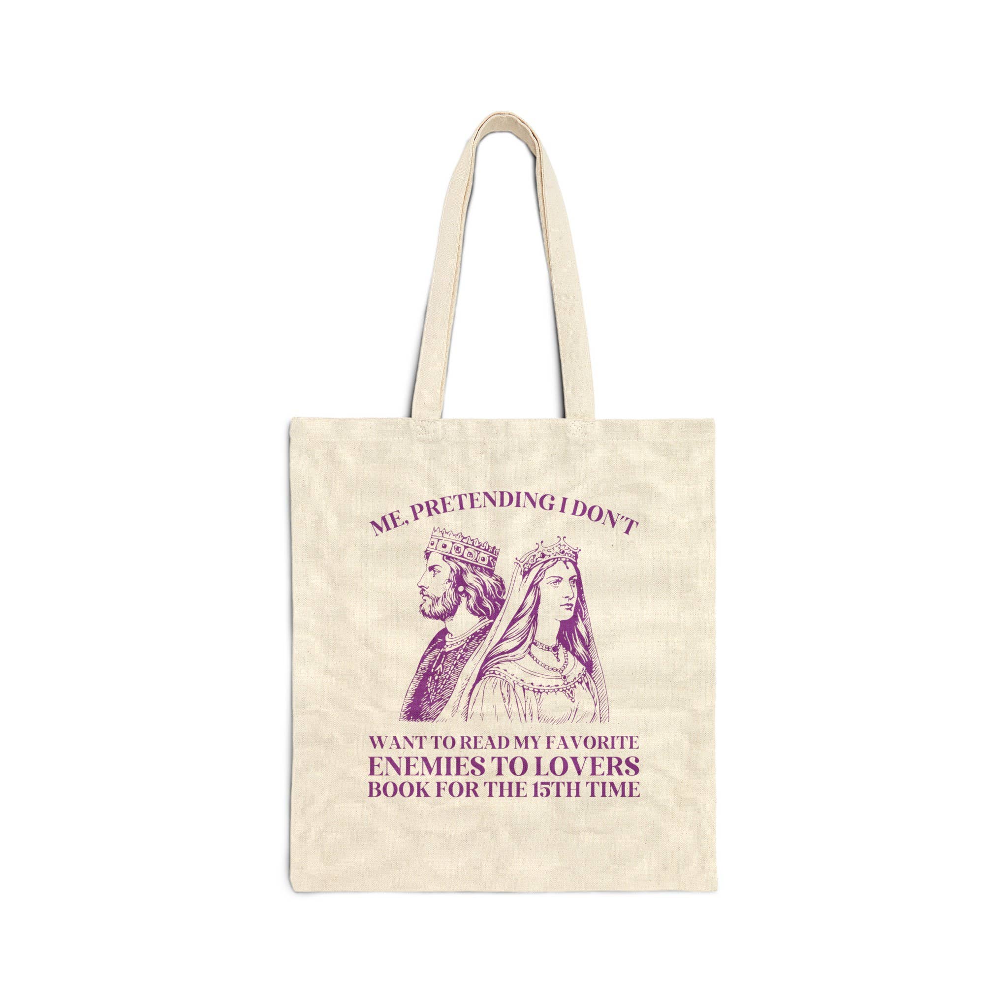 Looking for a vintage aesthetic tote bag with a funny phrase made for fantasy romance readers? We've got you! This cute + lightweight tote bag is printed on sturdy, somewhat textured cotton canvas. With a ton of space and the cutest print, your customers are sure to love this cute bag! Item features a cute illustration of woman flying over a gothic castle with the phrase: "Me, Flying Past High Brow Literature To Read My Favorite Romantasy Series Instead". This one's for sure a conversation starter for every book shop and store, specially if you cater to romance readers. We love this tote and know y'all will, too! -------- More Details Below! 100% Cotton Canvas Reinforced Handles Sturdy, Slightly Texture Fabric Print Appears on One Side Only -------- SIZING INFO (Inches): Height: 15 Width: 16 Handle Length: 20