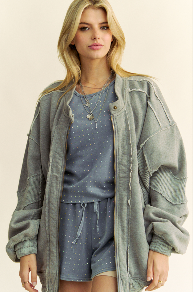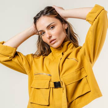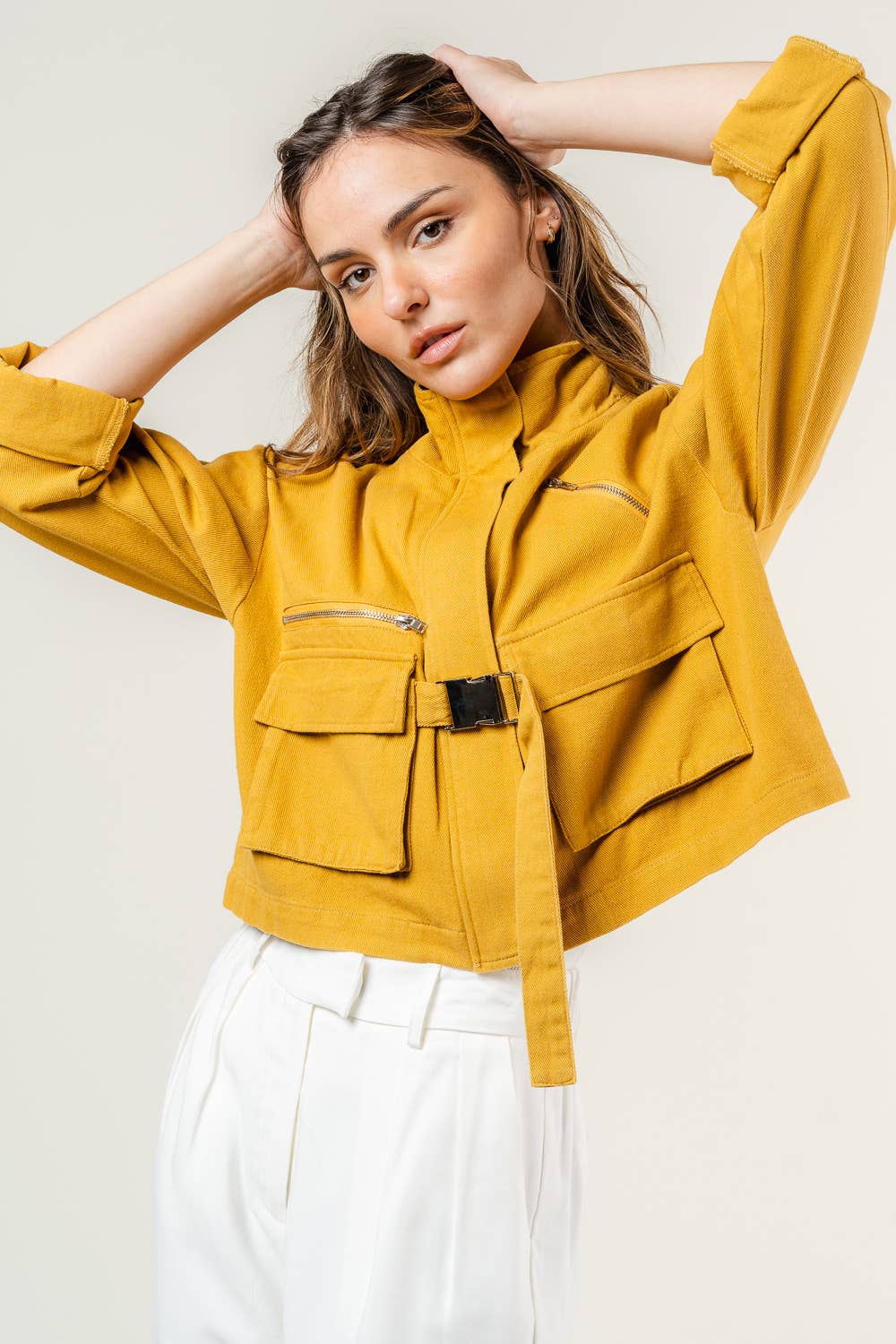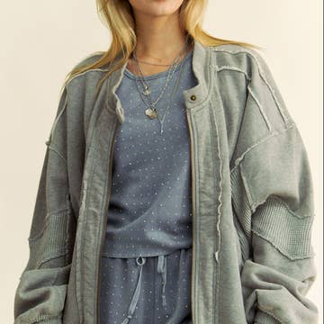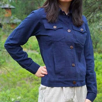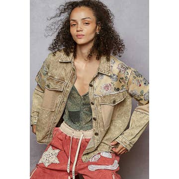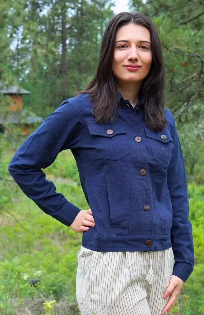 Style#AR25-15 100% Cotton. Light summer jacket. Front button opening. Bottom hem ruffles Sizes: XS, S, M, L, XL Model Namdol is 5'9" wearing a size M.