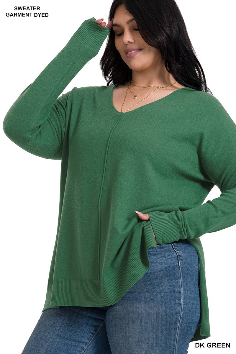 SOFT COZY SWEATER. THIS SWEATER FEATURES A V NECK. SEAM DOWN THE CENTER FRONT. EASY TO STYLE GREAT FOR WORK OR CASUAL EVERYDAY FOR COMFY. *DETAIL* -PLUS SIZE -RELAXED FIT -MADE WITH SOFT AND STRETCHY SWEATER KNIT -DROP SHOULDER -LONG SLEEVE -HI-LO HEMLINE -SIDE OPEN SLITS -BESTSELLER -CASUAL/CLASSIC STYLE -IMPORT