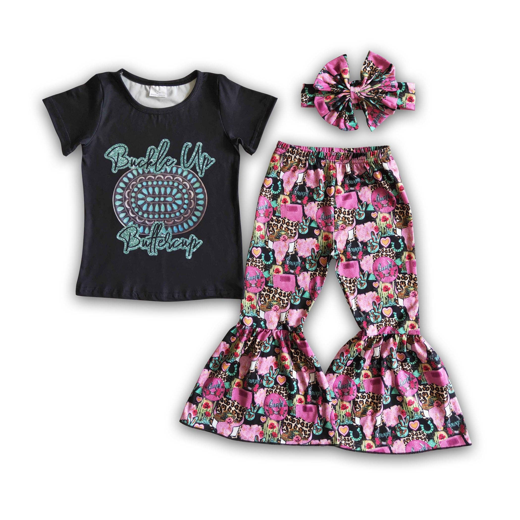 Girl Rust Aztec Bell Bottom Outfit