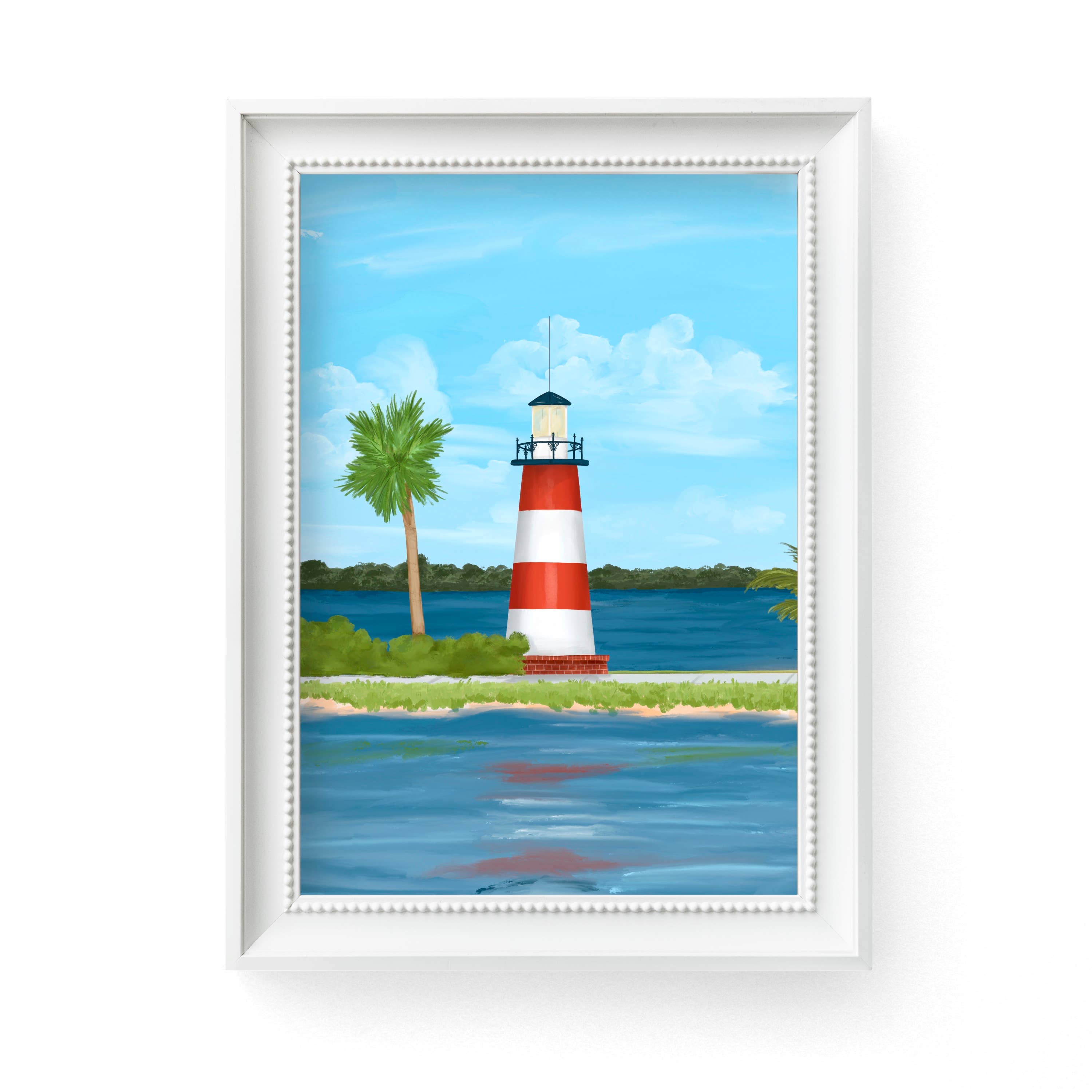 Fine art print of Hunting Island State Park in South Carolina. Printed with archival quality ink on 60lb Polar Matte Red River Paper. Packaged in Crystal Clear bag with a backing board and a logo sticker. Ready to display! Please note that the 8x10 and 11x14 prints will have a landscape layout. For the 4x6 and 5x7 print, the layout will be portrait to ensure the details of the lighthouse and sand/grass stay in the painting! This print is part of Kristin Holzer's South Carolina State Park Collection.