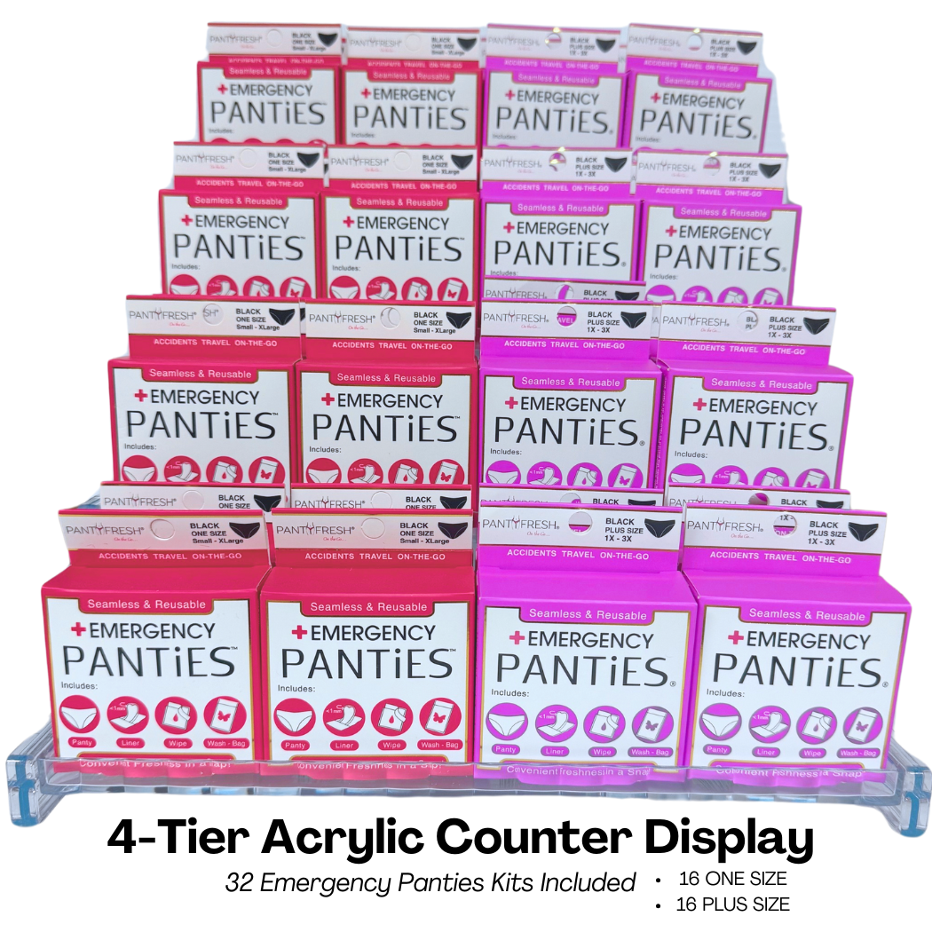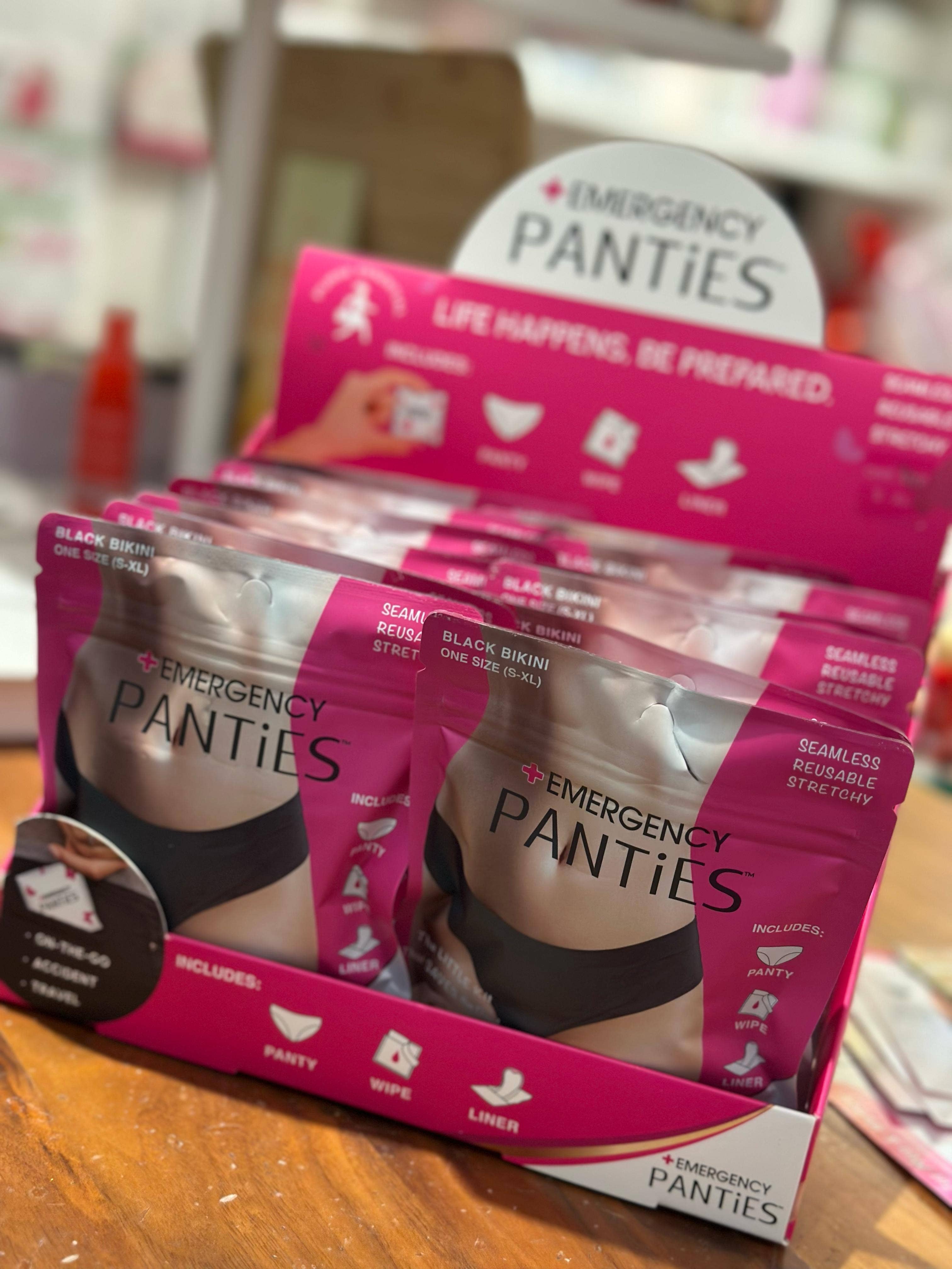 The Women’s Emergency Panties® Kit is a patented, award-winning hygiene solution designed for travel, daily use, and unexpected emergencies. Compact, discreet, and retail-ready, it’s the ultimate impulse buy that delivers strong margins and solves a real need for shoppers. ✅ Each Kit Includes: Reusable Seamless Panty – Premium-quality, super soft, stretchy, breathable, and ultra-comfortable. Washable and reusable. Fresh Wipe – Individually wrapped for freshness and convenience. Panty Liner – Provides extra protection and peace of mind. Wash Bag – A discreet pouch to place worn underwear until laundering. ✅ Available Sizing SKUs: One Size Black Bikini (S–XL) Plus Size Black Bikini (1X–3X) One Size Beige Thong (S–L) ✅ Retail-Ready Packaging: Compact, lightweight & designed for grab-and-go sales Easy to merchandise on wall hooks, clip strips, checklane racks, Qlines, or counter displays Appeals to both planned purchases and impulse buys ✅ Ideal For: Travel retail – airports, cruise ships, resorts, spas Convenience retail – gas stations, c-stores, highway travel centers Hospital gift shops & pharmacies – everyday practical essentials Boutiques, hotel sundries & specialty retail – adds thoughtful value for guests Gyms, yoga studios & fitness clubs – perfect backup in gym bags ✅ Why Stock Women’s Emergency Panties® Kits? Patented, one-of-a-kind solution not found in standard retail assortments Proven impulse driver with strong margins and fast sell-through Compact size makes it easy to stock in small spaces Solves real customer problems: lost luggage, travel mishaps, forgotten essentials, or unexpected periods ✅ Gift & Seasonal Opportunity: Perfect as stocking stuffers, bachelorette favors, swag bag inserts, or travel gift ideas Customers purchase for themselves and as thoughtful gifts for others ✨ Give your customers a product that blends innovation, comfort, and preparedness — while giving your stores a proven, award-winning item that sells.
