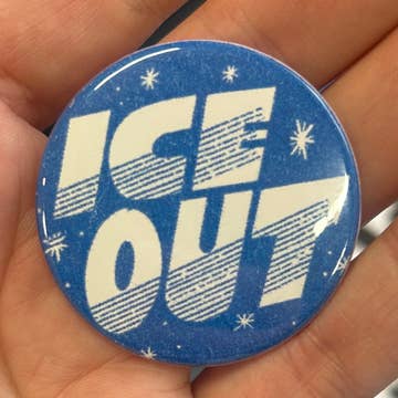 Get out and stay out. Made in Minneapolis Size: 1.75" Each button is designed, riso printed, punched and pressed by Bench Pressed in the USA