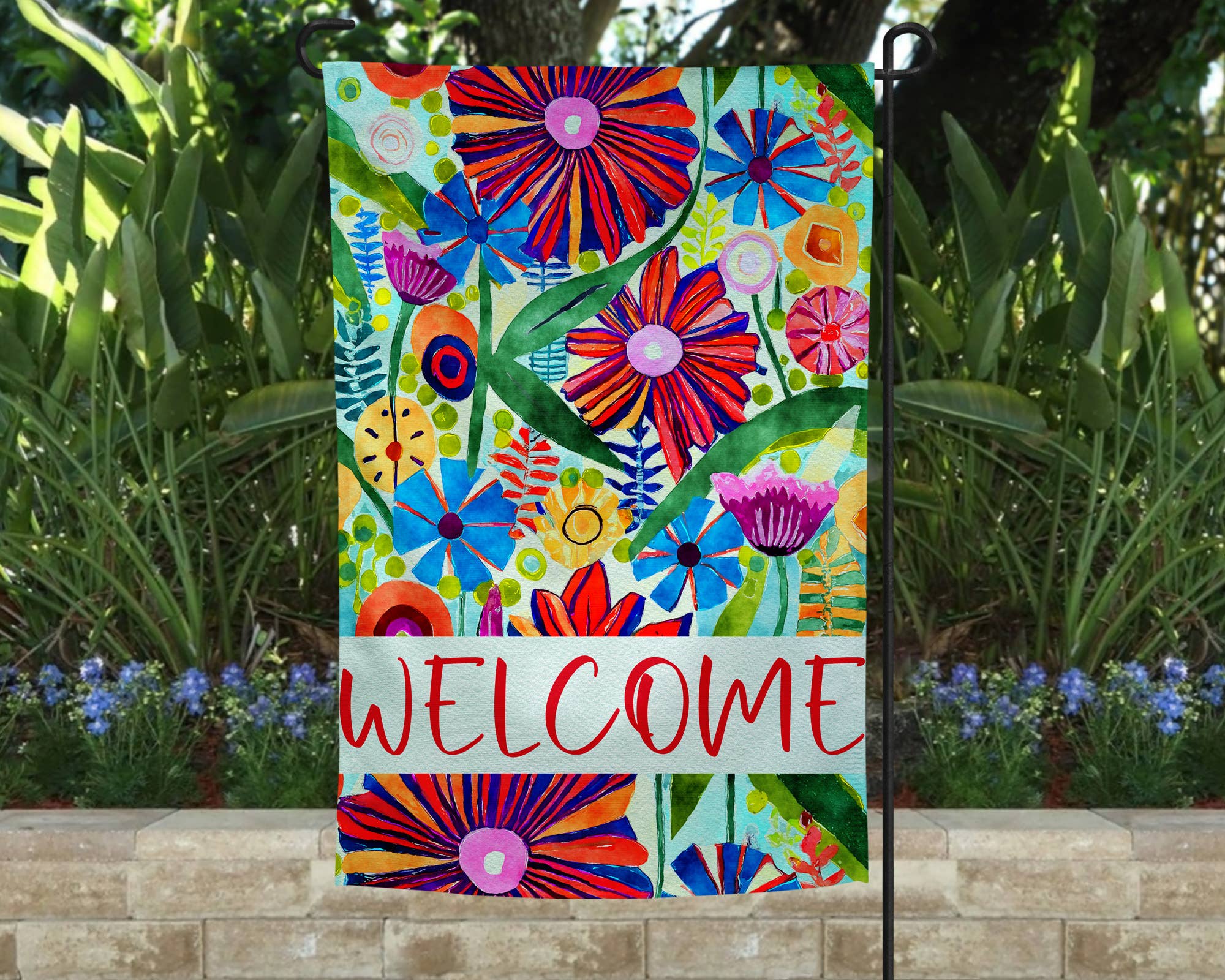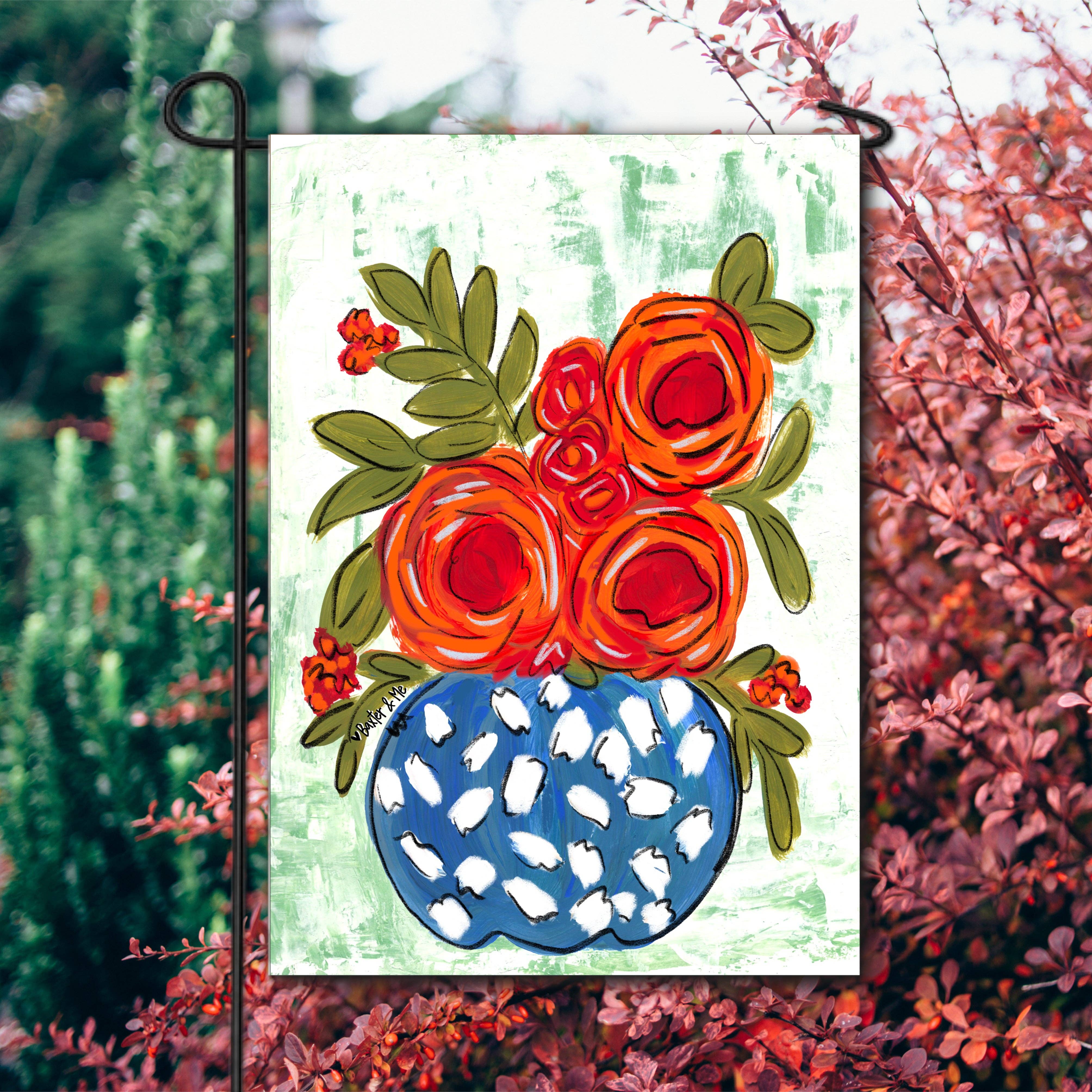 | ABOUT OUR GARDEN FLAGS | •Original hand drawn artwork by Alicia of Painted Skies! •Printed in house on a 12 x 18 polyester garden flag. •Mildew resistant. •Choose between single sided (print on front and white on back) double sided (same print on front and back). •Flag stand is not included. You are purchasing the garden flag only. | OUR PRINT PROCESS | •All garden flags are printed in house. •Our printing process allows the ink to soak into the fabric. The ink will not crack or peel! •The color of the ink may differ slightly from what you see on your screen. | HOW TO CARE FOR YOUR GARDEN FLAG | •Place your garden flag in a spot that is not in direct sunlight. •As with just about anything that is exposed to sunlight, fading can occur. Prolong the life of your flag by making sure it is in the shade throughout the day as much as possible.