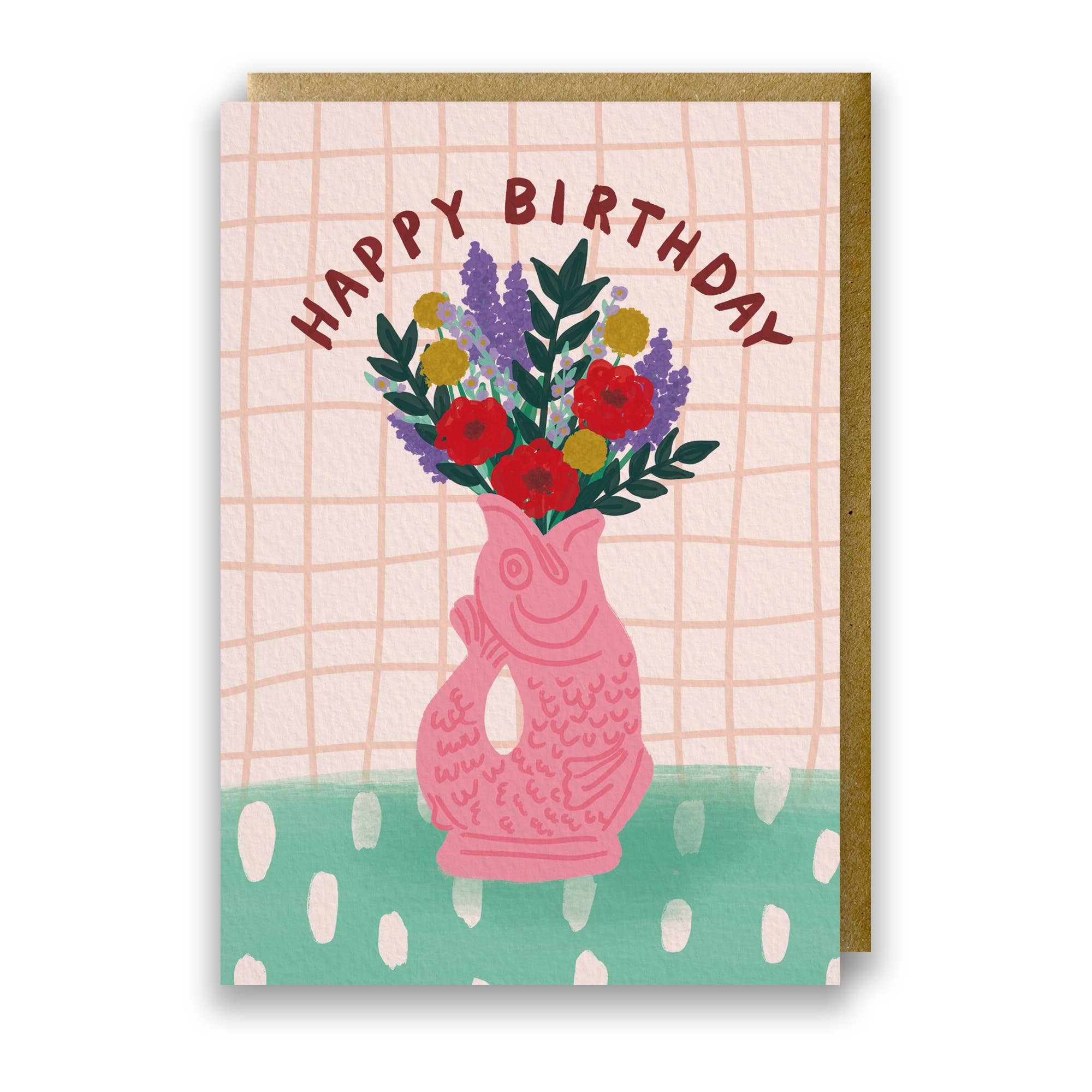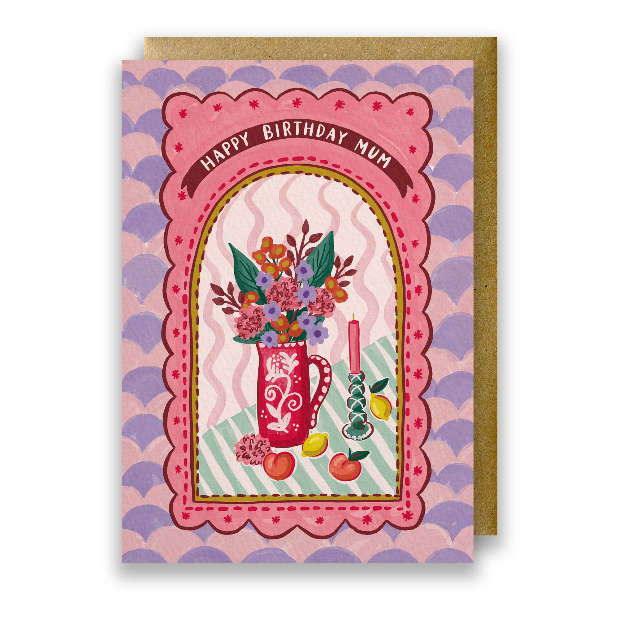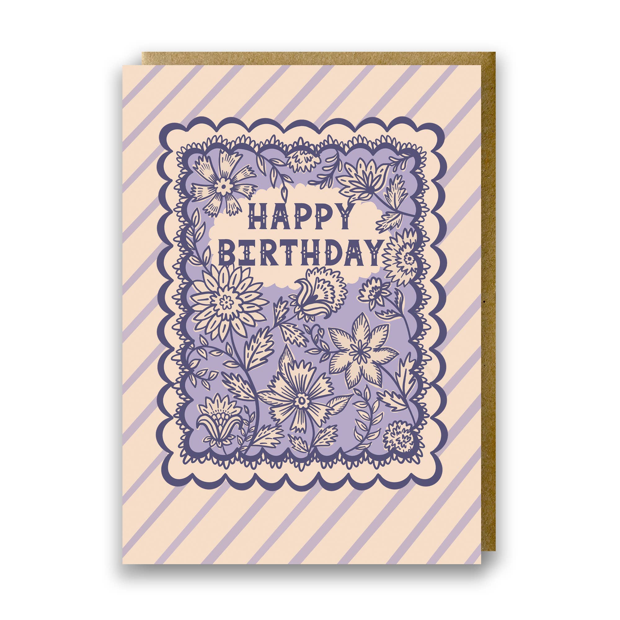 This pretty birthday card is inspired by traditional Indian block prints and the city of Jaipur. The intricate floral illustration has a decorative scallop border with a contrasting stripe background. The hand lettered typography within the flowers reads 'Happy Birthday'. The lush pink palette, graphic stripes and detailed floral print combine to make a stylish and artful card design. This pretty design is part of a large range of illustrated cards inspired by India, entitled 'Jaipur Bloom'. They cover all occasions, from sending love to relations birthdays. The joyful rainbow palette and combination of stripes and florals make these designs a beautiful addition to your card collection. * 5” x 7” size greeting card with kraft envelope * Arrives nested and banded in 6's with a paper band * Premium quality 350gsm matte GF Smith card * FSC certified board * Plastic free packaging * Original illustration * Printed to order in the UK