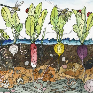A sunset pathway, nutrition, seeds... this design is abstract yet obvious. Especially nice for those of us that love fresh picked peas in Spring. • 5 x 5 Inches • Full Bleed with Black Border Cover • Art Title, Artist Name/Information on Back • Digitally Printed for Brilliant Color • Accent Opaque Super Smooth 100 lb. Cover • White Envelope with Square Flap • Crystal Clear, Acid Free Archival Sleeve (10% Recycled Content)