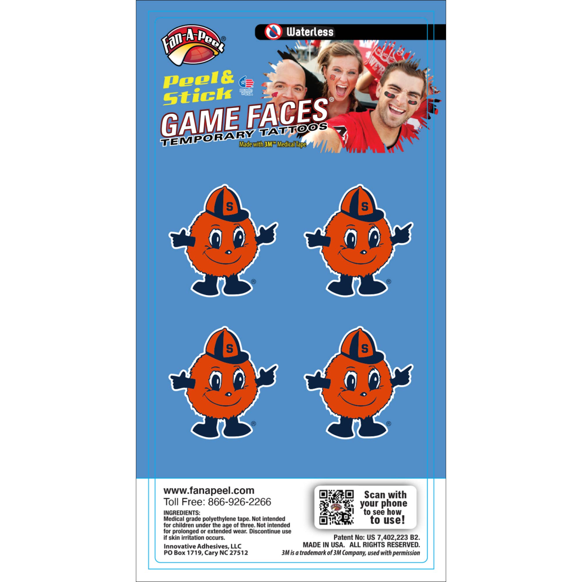 Get your game faces on! Show your game day style with game faces® temporary tattoos. Each package contains 4 water Tattoos are approximately 1.25" x 1.25"