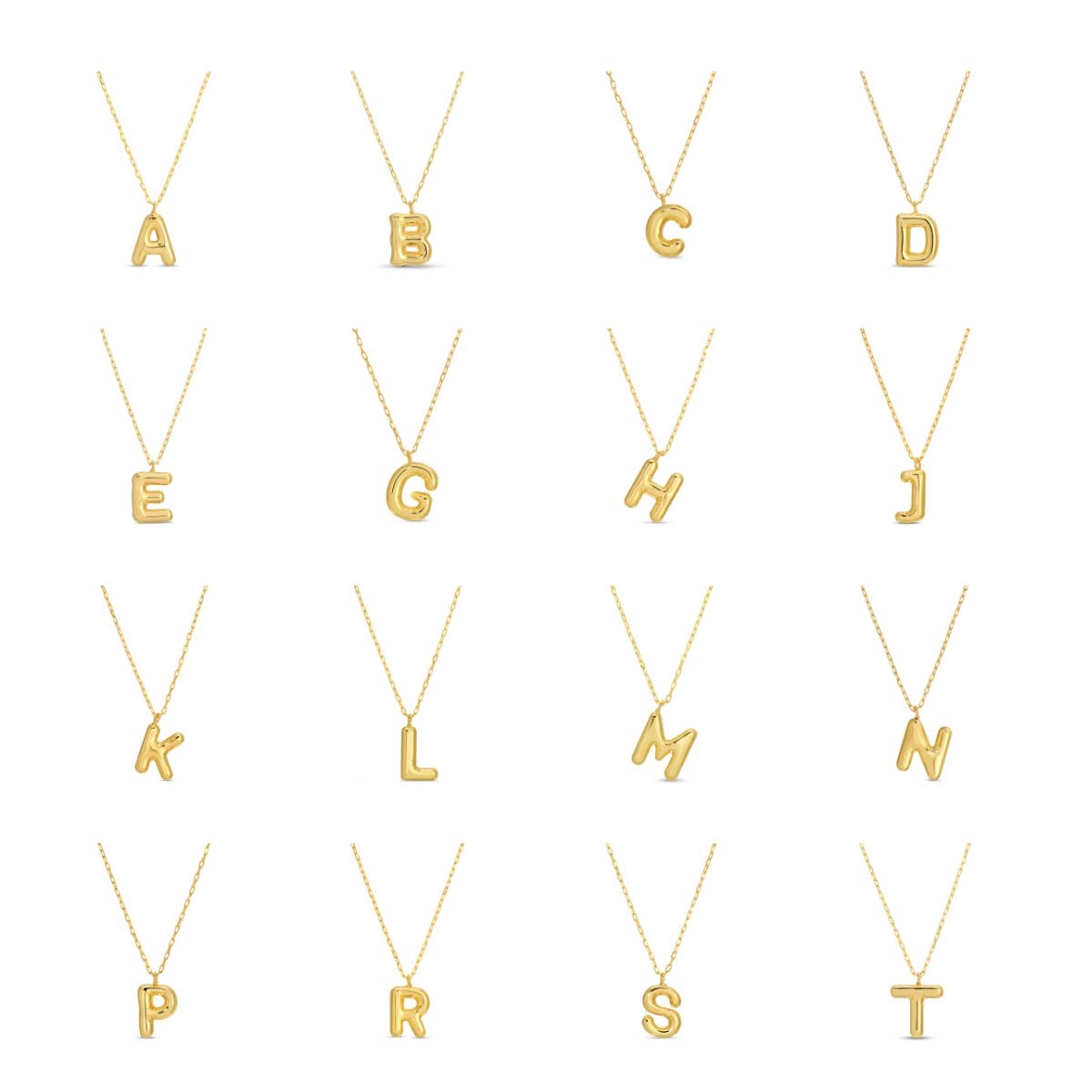 Elevate your jewelry collection with our 18K Gold Dipped Bubble Initial Necklace, a perfect blend of modern elegance and personalized charm. Featuring a sleek, puffy bubble letter pendant, this necklace is crafted with high-quality materials and dipped in 18K gold for a luxurious finish. The minimalist yet bold design makes it ideal for everyday wear or as a thoughtful gift for loved ones. Letters: A, B, C, D, E, F, G, H, J, K, L, M, N, O, P, R, S, T, Size: 16" + 2" , Charm size: 0.5" 18K Gold Dipped Material: Brass
